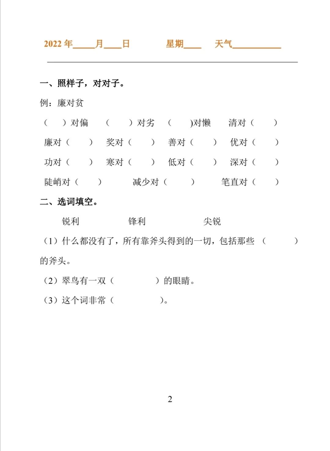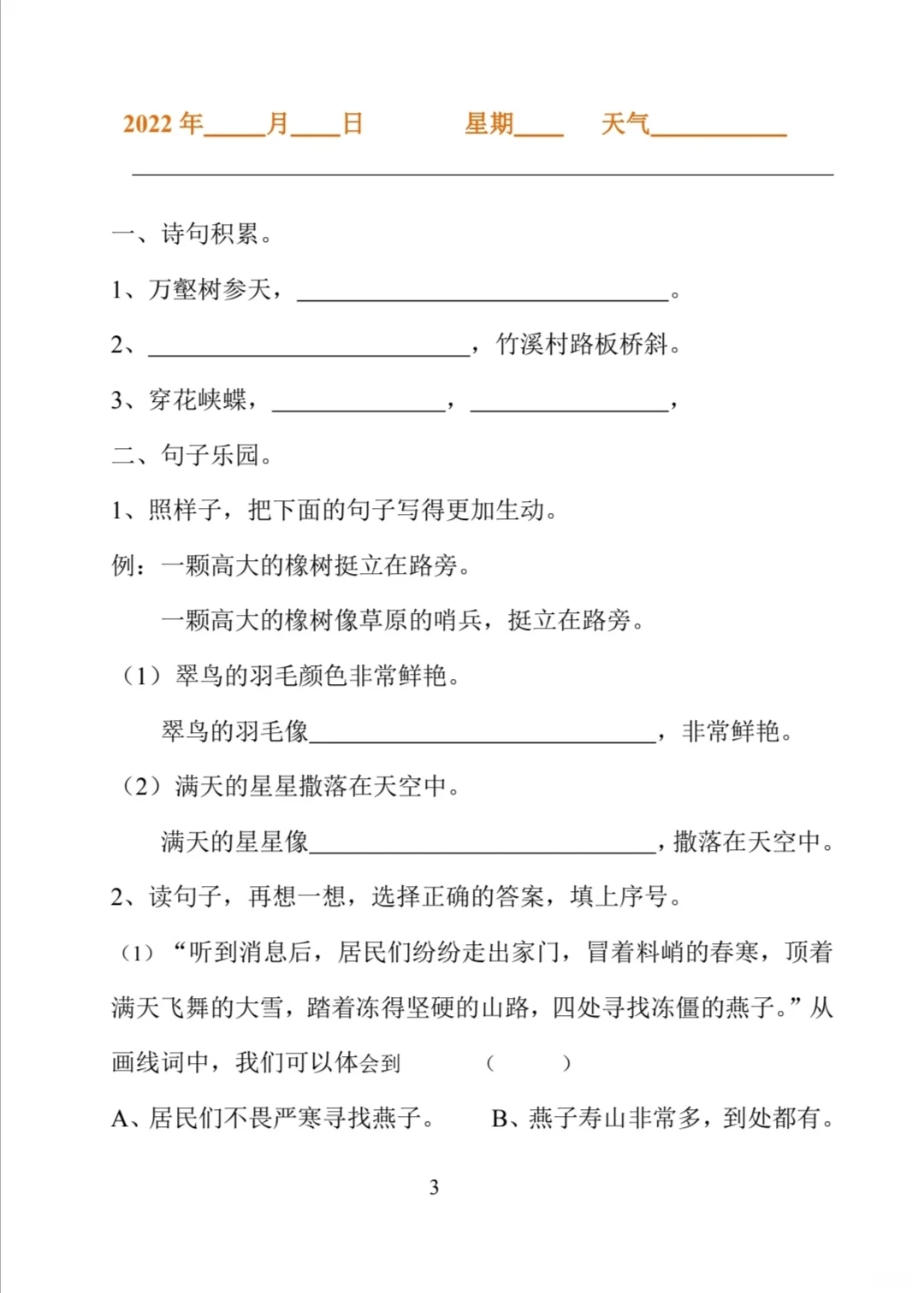 三年级暑假专项练习
