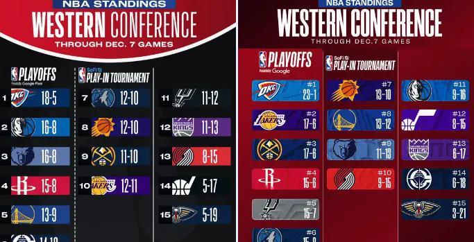 人家是三十年河东三十年河西! 到了湖人这里,得到东契奇之后,直接起飞,一年河东,一年河西! 又是湖人球迷笑晕在厕所,独行侠球迷哭晕厕所的一天! 独行侠球迷:卢克,我们到底是怎么样子失去了你的? 今天,湖人击败76人,湖人17胜6负,西部第二。 湖人成了夺冠大热,并非仅仅季后赛球队了。 去年今天,12胜11负,西部第十。 而去年今天,独行侠西部第2, 今年今天,独行侠西部第11! 最有意思的是,去年今天,快船西部第六,这个休赛期,也引援成功,成为了休赛期夺冠大热! 伦纳德也是健康状态的。 可如今,快船西部第14,在为雷霆,捡状元碎片的路上,越走越稳健了。