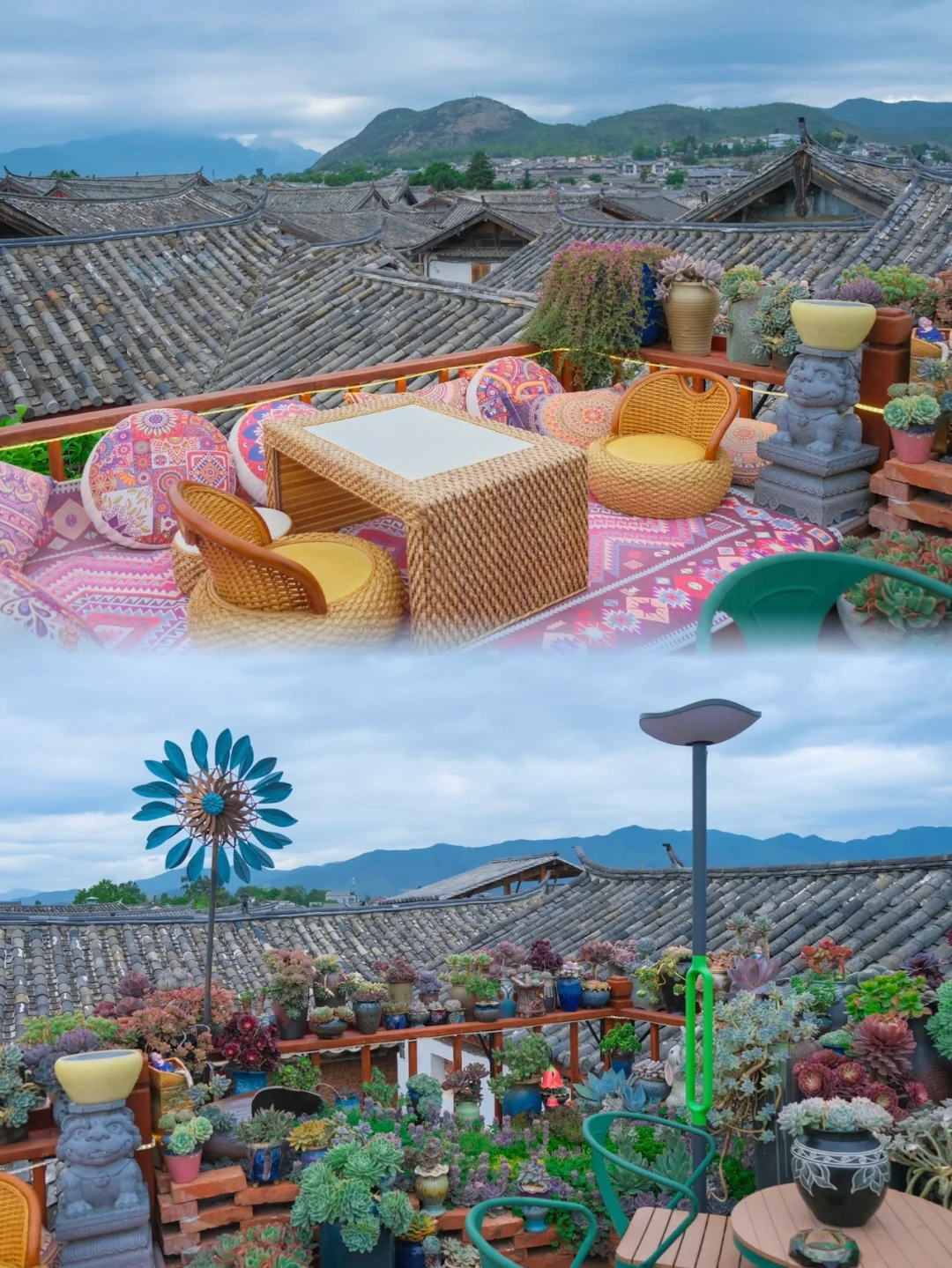 1⃣️位于丽江古城核心地带,闹中取静,繁花簇拥🌸,树影重落;露台可眺望巍峨雪山🏔️;