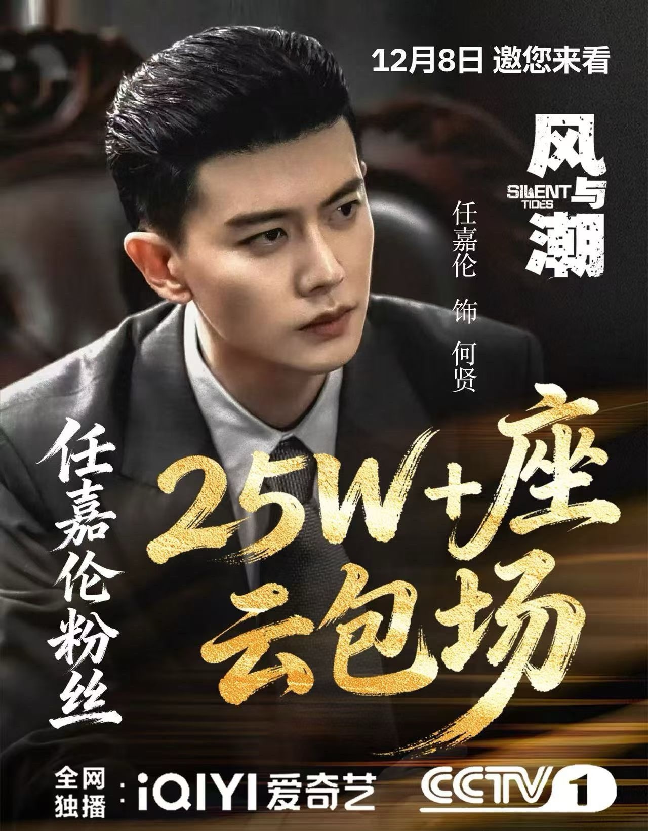 任嘉伦主演的风与潮今晚8点央一➕🥝播出粉丝准备了25w➕云包场邀请大家来看期待何贤