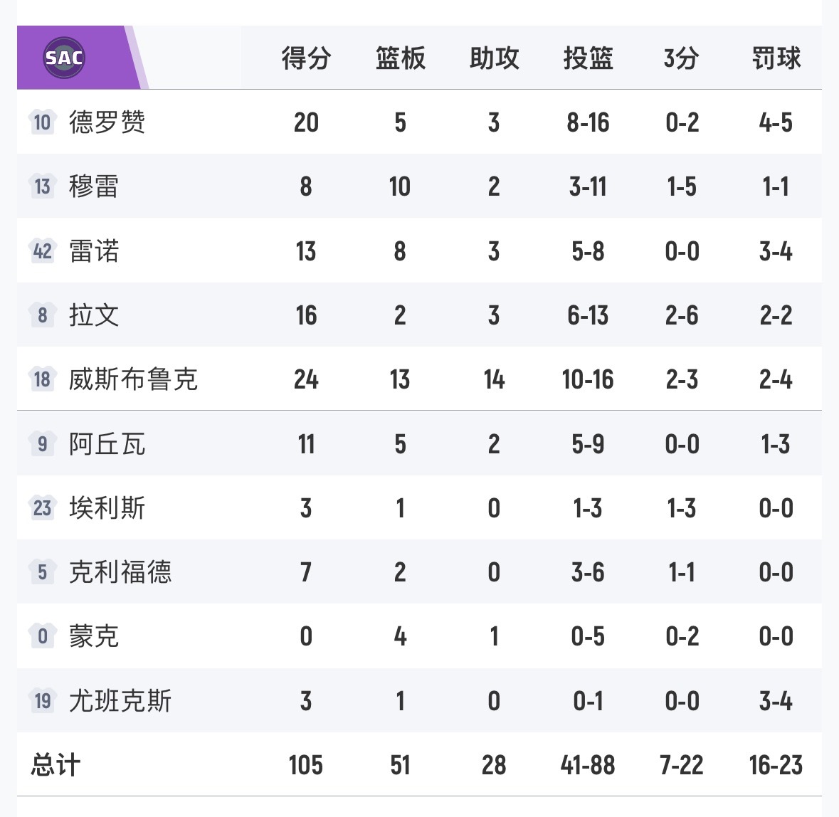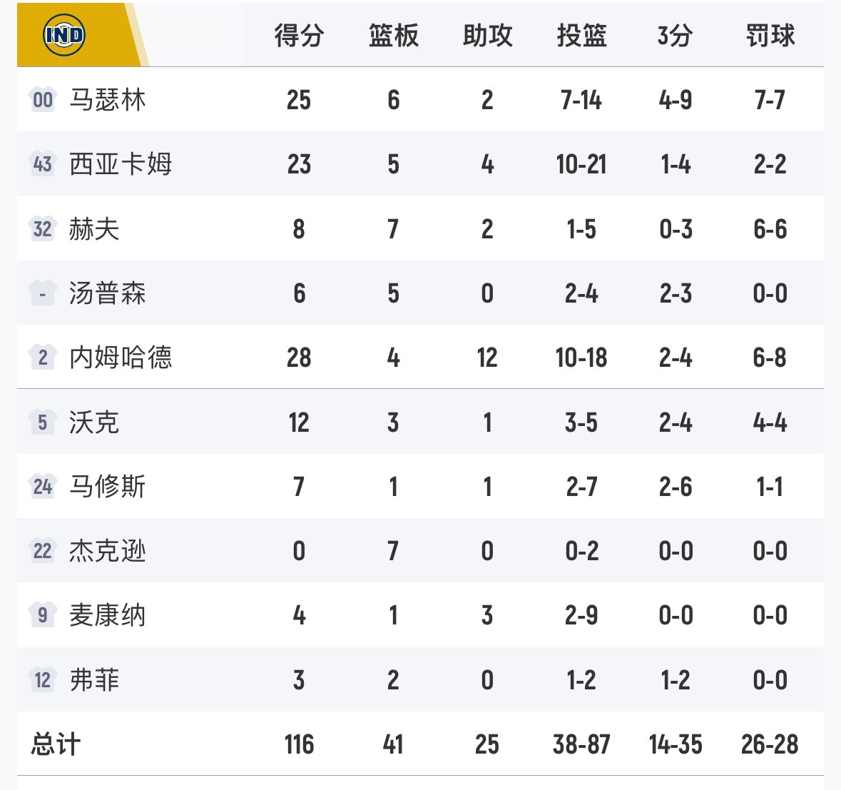 步行者116-105击败国王,内姆哈德28分12助攻,威斯布鲁克24分13板14助攻,生涯第207次三双。