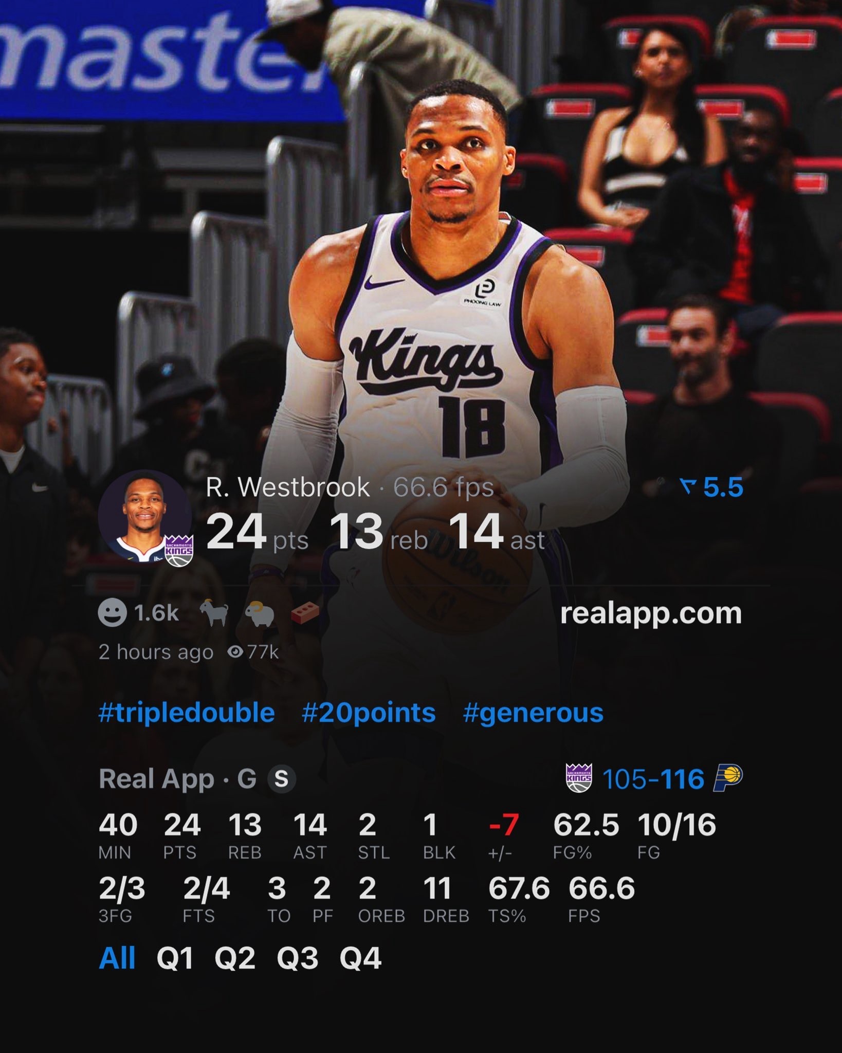 步行者116-105击败国王,内姆哈德28分12助攻,威斯布鲁克24分13板14