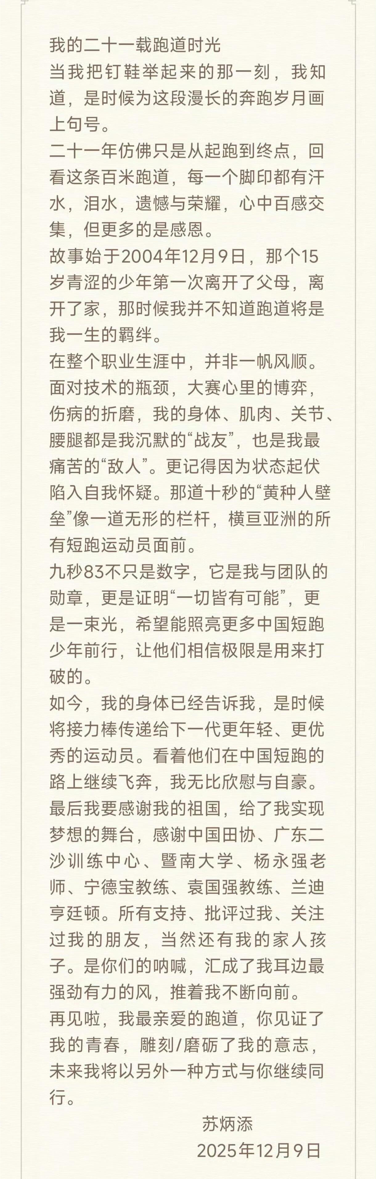 再见苏神!36岁苏炳添自宣退役,传奇永不落幕!苏炳添退役苏炳添正式宣布退役苏炳添传奇永不落幕