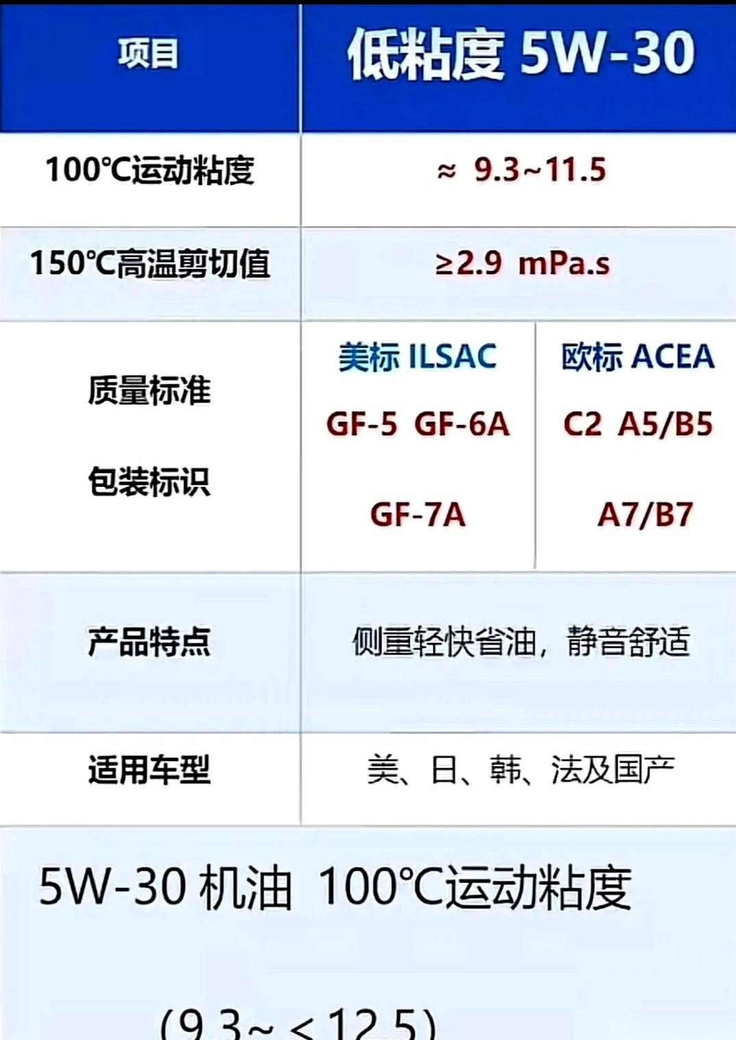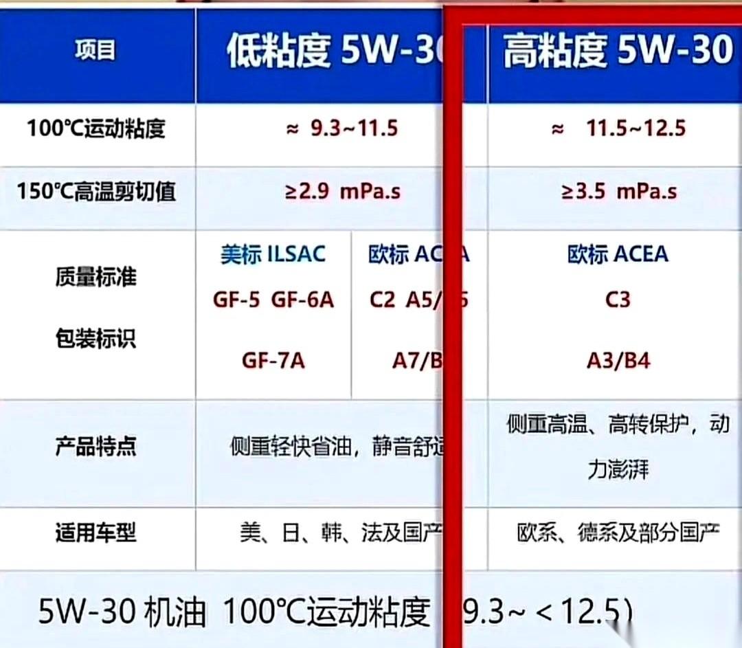5W-30机油,简直是车圈最大的一个“坑”。 好多人高高兴兴买回去,发动机却在偷偷哭。 你以为的5W-30,跟你买到的5W-30,可能压根就不是一回事。 别嫌我说话难听。 这玩意儿就跟人一样,看着都叫“张伟”,一个是在办公室敲键盘的,一个是健身房举铁的,能一样吗? 机油也分两种。 一种是“稀”的,主打一个省油,给那些日系、美系、韩系车喝的,讲究个经济适用。 另一种是“稠”的,主打一个保护,给那些发动机要求高的德系车“吃”的,要的是高温下的油膜强度。 用错了什么后果? 你给德系车喂了省油的料,它就跟你闹脾气,没劲儿、噪音大,搞不好还开始“喝”机油。 你给日系车灌了高性能的稠机油,那也别高兴,纯属浪费钱,动力还可能变肉,更费油。 所以咋办? 别听销售忽悠,也别看瓶子长啥样,那都是虚的。 就看机油桶身上的“认证”,那是它的身份证,做不了假。 记住这几行字就够了: 日系、美系、韩系和大部分国产车,你就找瓶身上有没有【GF-6】、【C2】或者【A5/B5】。这几个是“省油派”的代表。 开德系车的,你就认准【C3】或者【A3/B4】。这俩是“保护派”的扛把子。 说白了,机油这玩意儿,不是越贵越好,也不是一个型号通吃天下。 是你的车“吃”什么,你就得喂什么。 别拿自己的钱,让发动机遭罪。
