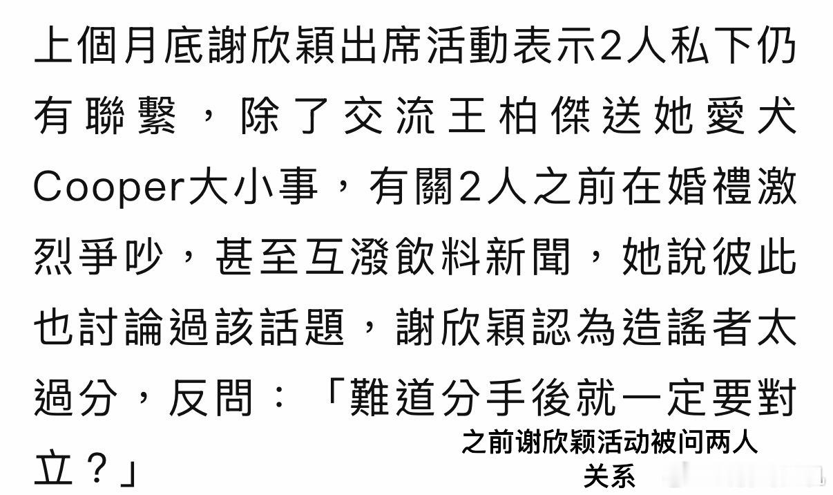 据台媒,王柏杰与谢欣颖分手近半年,日前传出复合传闻。友人问他是否与谢欣颖复合?王