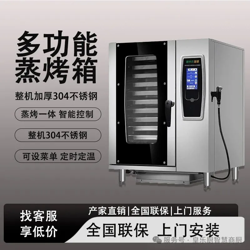 功能集成:皇乐厨万能蒸烤箱集蒸、烤、焗、焖、烘焙等模式于一体,可替代传统蒸柜、烤箱等多台设备,减少厨房设备占地面积,使空间利用率提升高达40%。