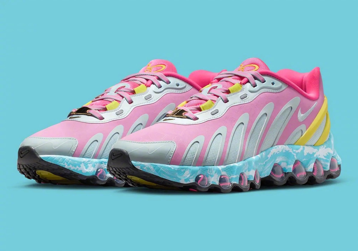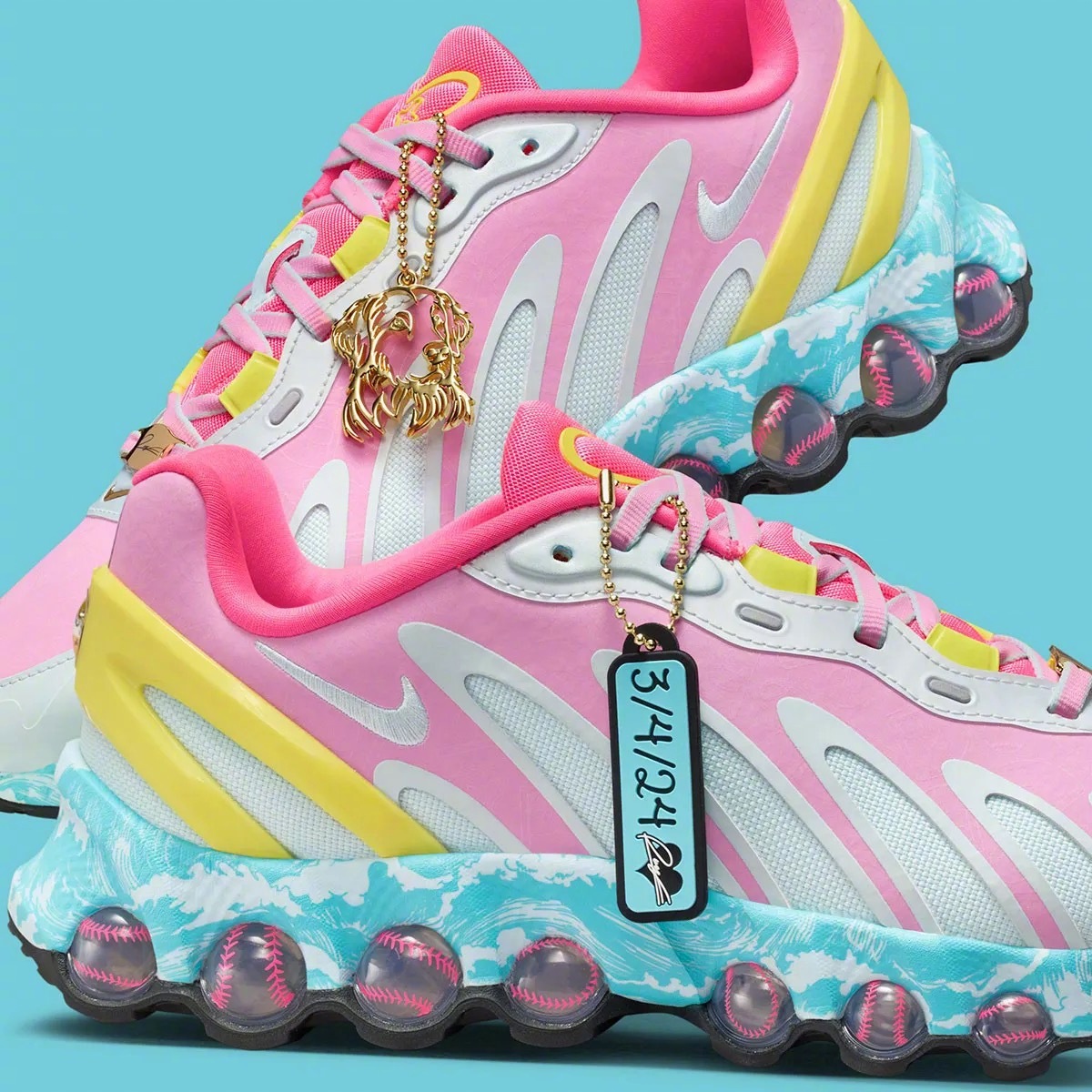 Nike Air Max DN8「Doernbecher」🥦🥕🍆OHSU Doernbecher儿童医院小患者 Raegan Scheid 参与设计的Air Max DN8「Doernbecher」版本官图,Max DN8中底气垫上的垒球缝线源自她对软式垒球的热爱,泡沫般拍打的蓝色中底与鞋垫上的图案源自她的快乐之地——海滩🌊,鞋垫上还写有代表勇气的座右铭「I CAN DO HARD THINGS」以及她初次接受心脏手术和再次回到垒球场的日期,同时还附带这个日期的挂牌和爱犬图案的吊坠⚾️🐶2026 Spring