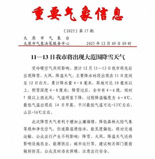 后天夜间到12日白天:多云转阴天,有中到大雪,4~5级、短时6级偏东风,-7~0℃。