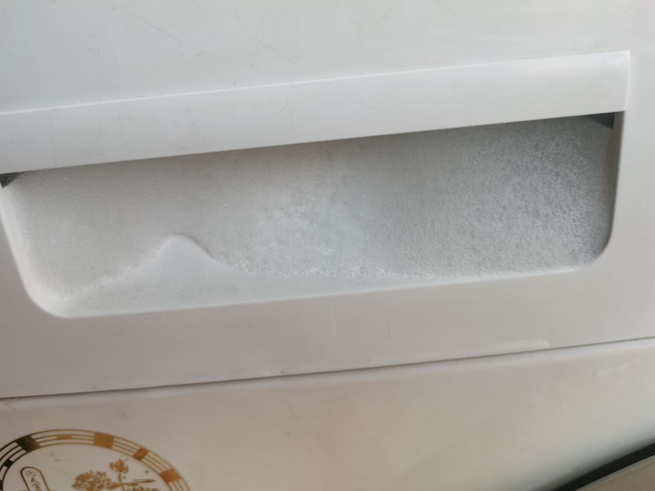 友友们见过洗衣机这么漏水的嘛[捂脸][捂脸] 今天洗衣服, 不小心洗衣液又放多了。 觉得可能是洗衣机漏水了, 满阳台的泡泡, 等我收拾完地板, 就去查看洗衣机, 想知道大概是是哪里漏水了, 最后抬头一看,发现。。。 原来洗衣机没有漏水。 是因为洗衣液放多了, 泡泡太多, 从进水口, 也就是放洗衣液的洗涤盒右侧边槽 , 放消毒液的位置 “飞”出来了~~~[泪奔][泪奔]