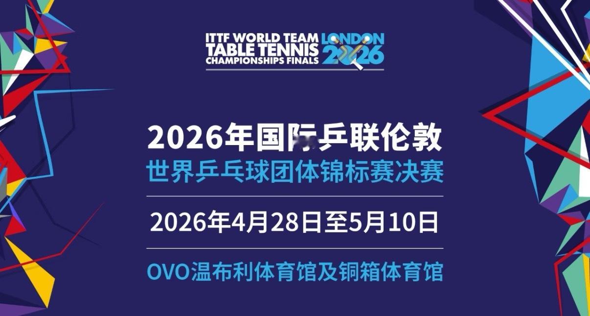 2026年国际乒联伦敦世界乒乓球团体锦标赛决赛,将于2026年4月28日至5月1