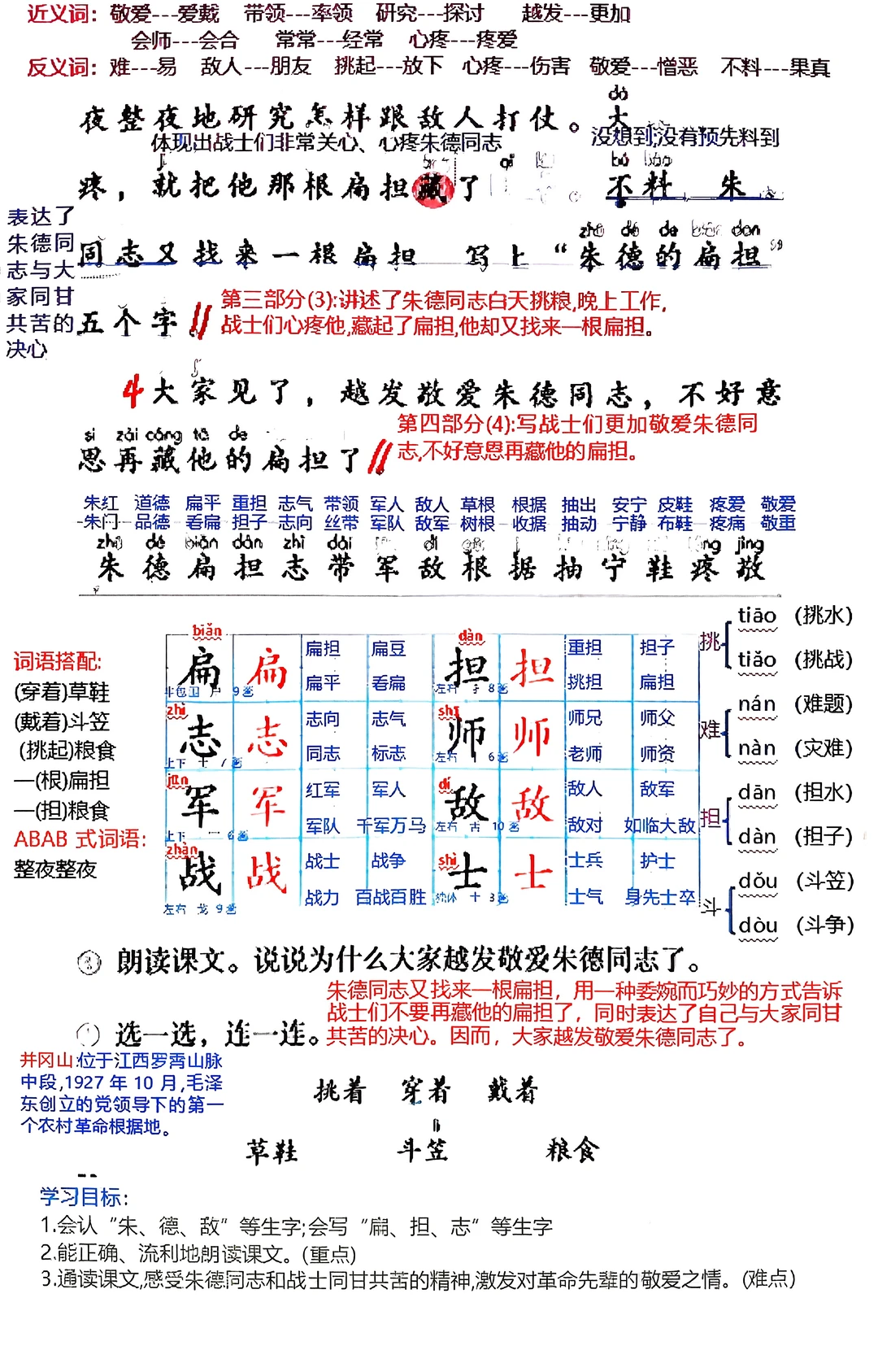 二上语文第15课《朱德的扁担》详细笔记