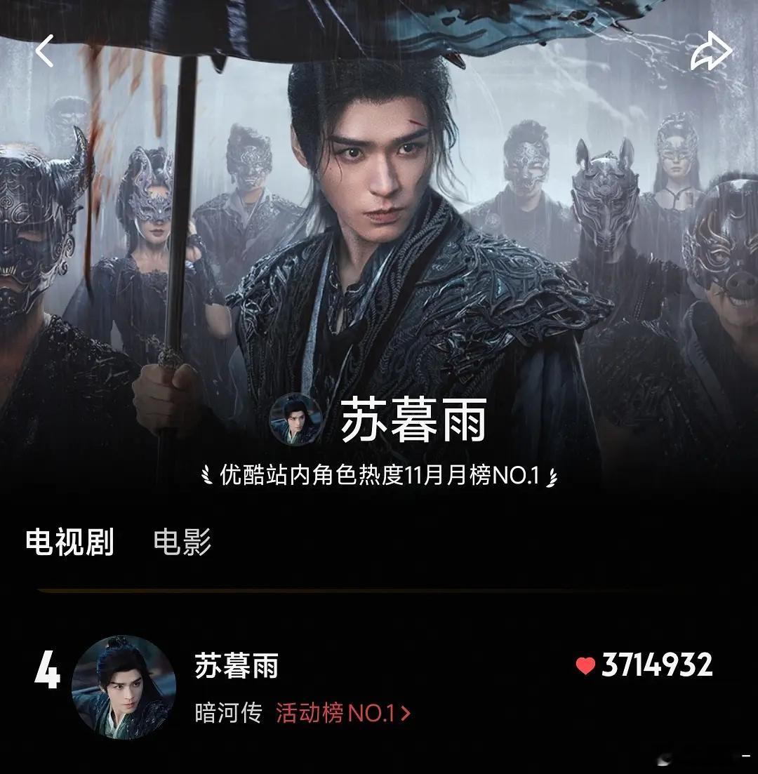龚俊拿到优酷站内角色年榜第四!继续送⭐️,到第三也很有希望,加油