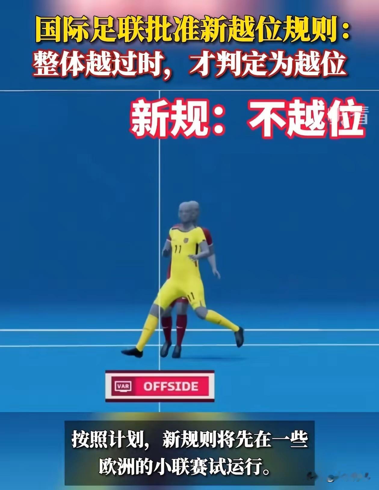 国际足联推出新规定了! 最近,国际足联推出了两项新规定。一是对越位的认定规则。二是确定在世界杯比赛期间的补水时间。 越位新规 是指进攻球员,只有在身体整体越过倒数第二名球员,才算是越位。 也就是说进攻球员只要有一点的身体部位(比如脚后跟),还与倒数第二名的防守球员的身体有重叠之处,那就不算是越位。 补水时间 国际足联确认,在2026年美加墨世界杯将推出“强制补水暂停”的规定。 具体是比赛上、下半场的第22分钟,强制进入3分钟的补水时间。 如此一来,足球比赛与篮球分为四节(上、下半场各分2节)有些相似。 另外,国际足联还将推出,球员受伤被担架抬出场外治疗后,必须在场外待够2分钟后,才能够返回球场参加比赛。 这样,可以减少假装受伤或“卧草”拖延时间的情况发生。 因此,中国球员以及裁判,是不是也该好好了解学习一下呢!