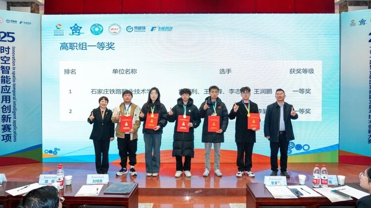 12月5-7日,2025一带一路暨金砖国家技能发展与技术创新大赛时空智能应用创新赛项在石家庄铁路职业技术学院举办。本届大赛由金砖国家工商理事会中方理事会、一带一路暨金砖国家技能发展国际联盟、“一带一路”暨金砖国家技能发展与技术创新培训中心主办,中国发明协会与教育部中外人文交流中心联合主办,金砖国家工商理事会技能发展、应用技术与创新中方工作组承办。时空智能应用创新赛项由石家庄铁路职业技术学院、易智瑞信息技术有限公司、北京飞渡科技股份有限公司等单位联合承办。来自全国105所学校的131组队伍,共计400多名选手同场竞技。经严格审核,最终决出一等奖13项、二等奖26项、三等奖39项。