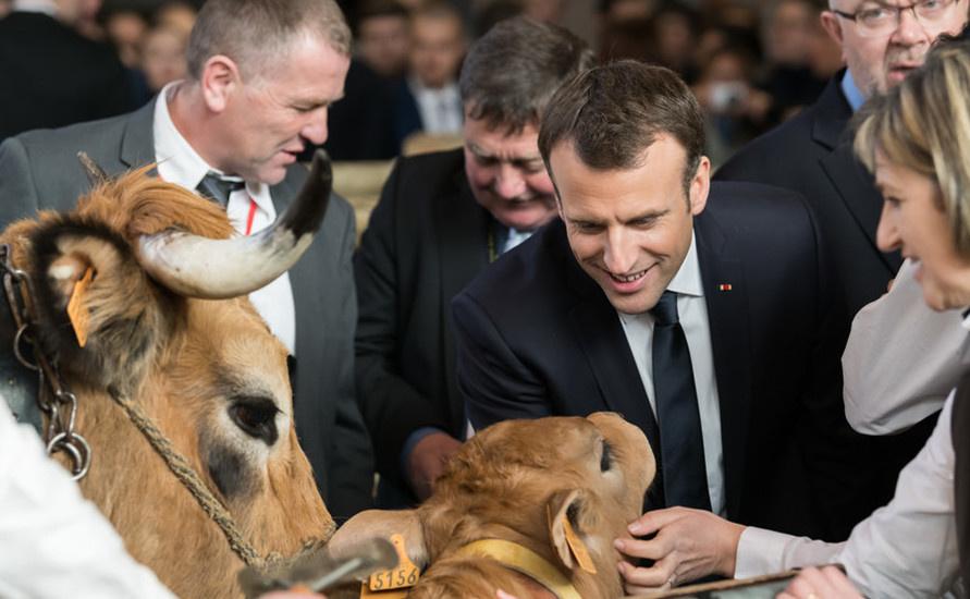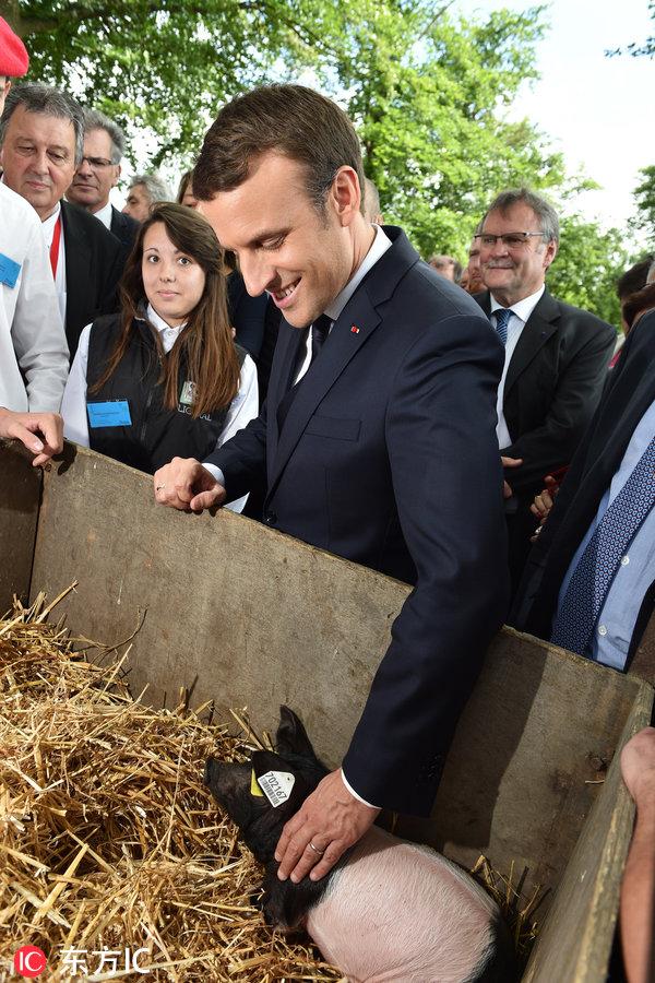 马克龙笑着摸猪崽,开心地注视着牛崽,那么喜欢小动物的他不知有无后悔没有自己的孩子。或许有又或许没有,一国总统思想肯定与平常人多多少少不一样。