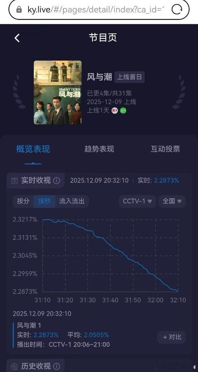 我担的风与潮 热度 招商 收视 百指 目前都是全面扑的走势…没有一点挽尊的角度算