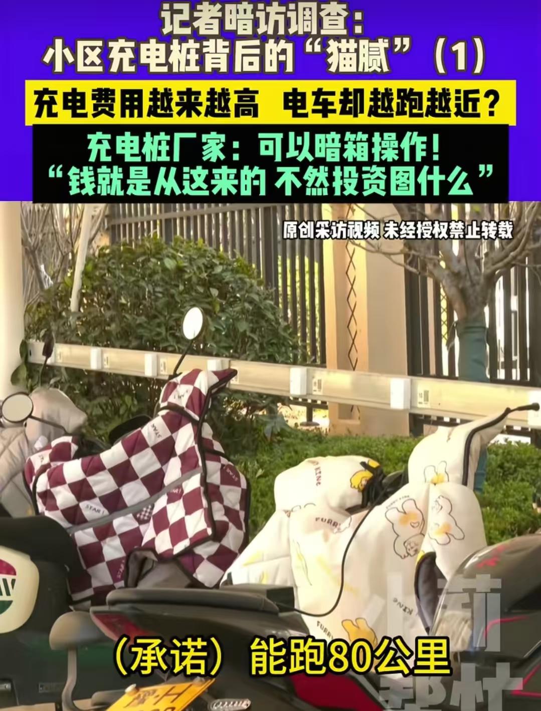 电瓶车充电桩的“猫腻”终于被曝光了!河南,女子花大几千买了个新电动车,商家承诺能跑80km,可是她充满电只能跑40多公里,她怀疑过电池,电动车质量,甚至怀疑天冷了电池耗电高了,从没怀疑过小区的充电桩,结果调查结果让她震惊不已! “明明已经充满电了,为什么只能跑一半!” 女子百思不得其解,买车的时候,商家信誓旦旦地拍着胸脯承诺,这车充满电能跑80公里呢!女子一听,心里那叫一个美,想着以后出行可方便了。 可现实却给了她沉重的一击。等她把车买回来,充满电一试,好家伙,只能跑40多公里,这差距也太大了吧!有好几次,因为估算不好续航,她都被困在半路上,女子心里那个郁闷啊! 她一开始怀疑是电池有问题,甚至还觉得是不是天太冷,把电池的电量给“冻”没了。可她唯独没怀疑过自家小区的充电桩。 后来她跑去质问商家,是不是卖的车子本身就有问题。商家倒也爽快,给女子的电池做了检测,结果显示电池没问题。 而且商家给车充满电后,女子发现续航里程又变多了。这时候,女子才恍然大悟,问题可能出在自家小区的充电桩上。 更让人无语的是,充电的费用越来越贵,电动车的续航却越来越短。 小区里的一位大爷看到记者来采访,也忍不住吐槽:“我那小电瓶,以前花不到两块就能充满,现在倒好,三四块都充不满。明明扫码充电是充满自停的,可电动车还是跑不远。这钱没少花,电动车却充不满电,到底是啥原因呢?” 记者为了弄清楚真相,以安装充电桩为由,询问充电桩厂家。 厂家工作人员毫不避讳地说:“不管哪家公司,都能在后台进行设置,就看你自己怎么调了。你要是把功率降低,把充电系数往上调一调,就算没充到1度电,它也会按照一度电来给你算钱。在手机的小程序里就能操作。因为是后台设置,居民充电的时候根本看不出来。我现在就明着告诉你,安装充电桩的人,他们的钱就是这么赚来的。人家花那么多钱投资这个东西,肯定是为了赚钱啊,难不成还做公益呀?” 此事引发热议,有网友说,终于有人发现这问题了,我老是怀疑充了虚电,但是又显示自动充满,然后我就怀疑是不是我电池有问题,现在自己从屋里拉线去充,好的很! 也有网友说,电瓶充电因为有爆炸火灾的风险,所以不允许拿回家充电,可外面充电就只能被拿捏虚电,我们该怎么办? 还有网友说,告诉你们一个秘密,扫码充电的时候,别点充满自停,选时间充电,比充满自停跑的远! 充电桩厂家工作人员的这番话,简直就像一把锋利的匕首,狠狠地刺痛了广大消费者的心。这哪里是什么便民设施,分明就是一些不法商家用来敛财的工具! 他们利用消费者对充电桩的不了解,在后台暗箱操作,肆意抬高充电费用,却让消费者得不到应有的续航里程。 这种行为不仅严重损害了消费者的利益,更是破坏了市场的公平竞争环境。 商家赚钱可以理解,但应该明码标价,哪怕价格高点,也不能暗箱操作。 相关部门必须得行动起来,加强对充电桩行业的监管力度,严厉打击这种欺诈消费者的行为,让充电桩真正成为方便群众、服务大众的便民设施,而不是成为不法商家牟取暴利的“摇钱树”! 否则,消费者的信任将会被彻底消耗殆尽,整个行业也将陷入万劫不复的深渊! (来源:河南广播电视台)
