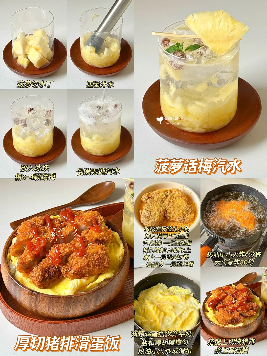 🥩厚切猪排滑蛋饭+菠萝话梅汽水🍍