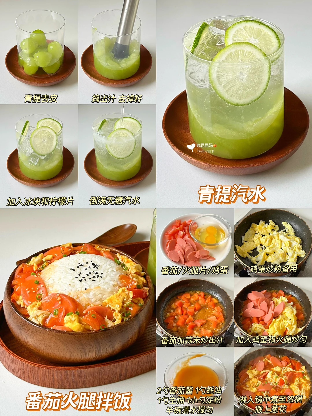 🍅番茄鸡蛋火腿饭+青提汽水🍃