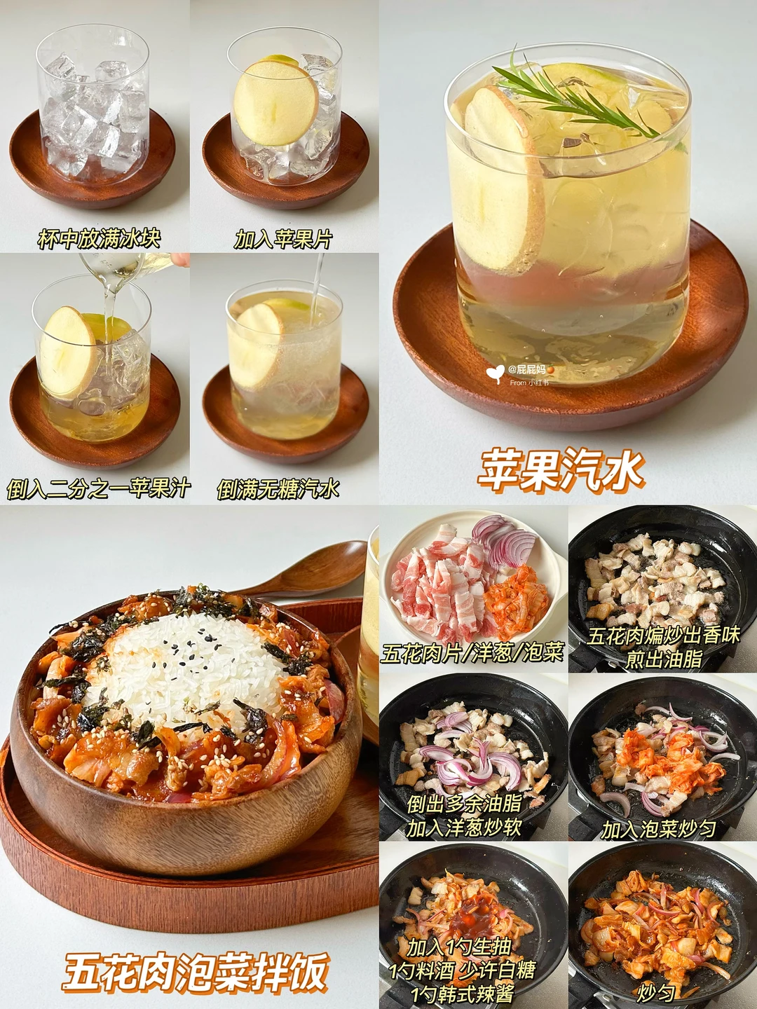 🥓泡菜五花肉拌饭+苹果汽水🍎