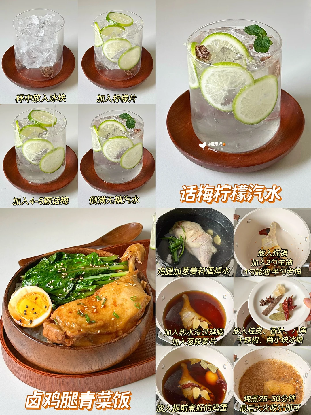 🍗卤鸡腿青菜饭+话梅柠檬汽水🍋