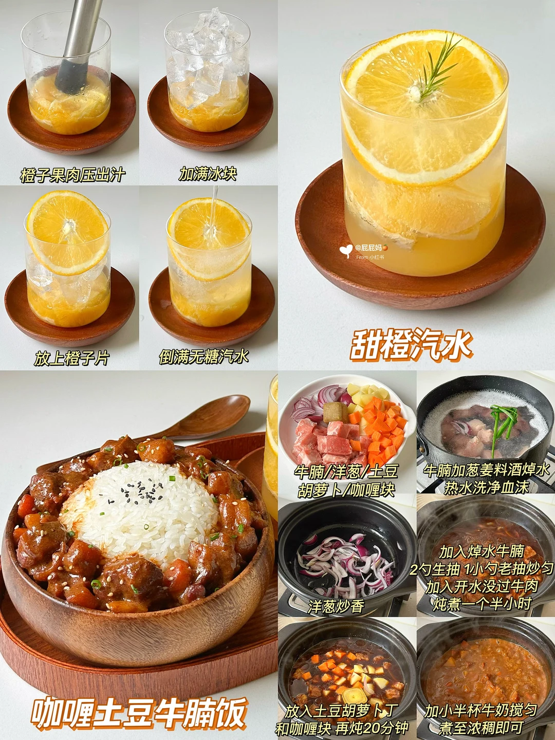 🥔咖喱土豆牛腩饭+甜橙汽水🍊