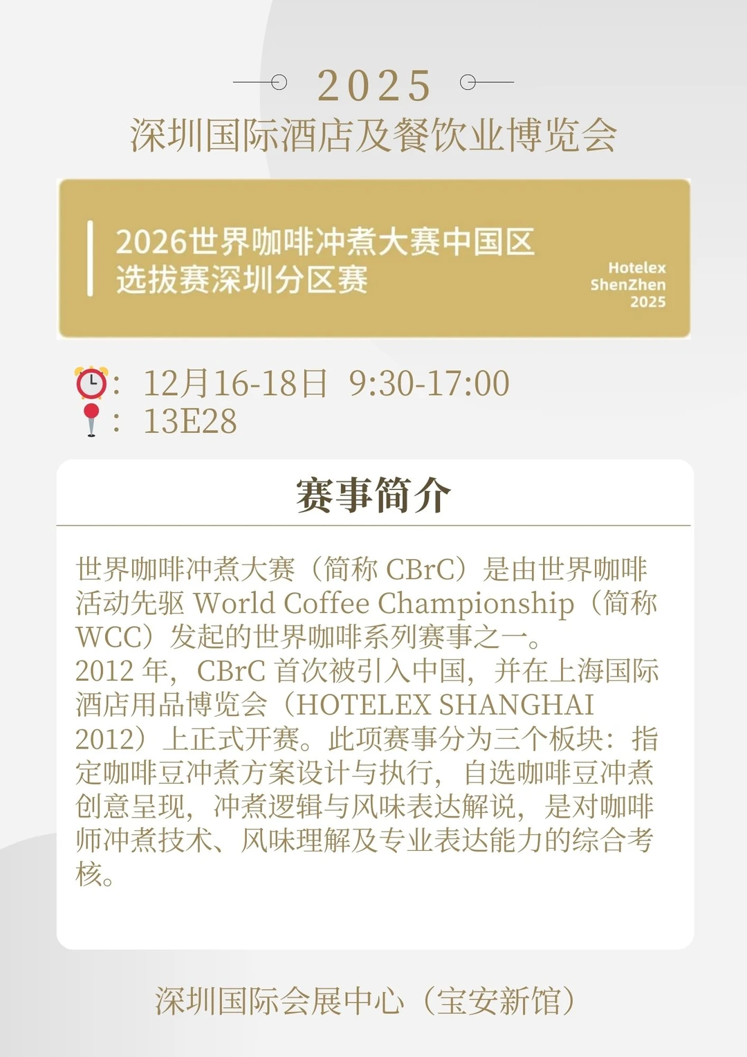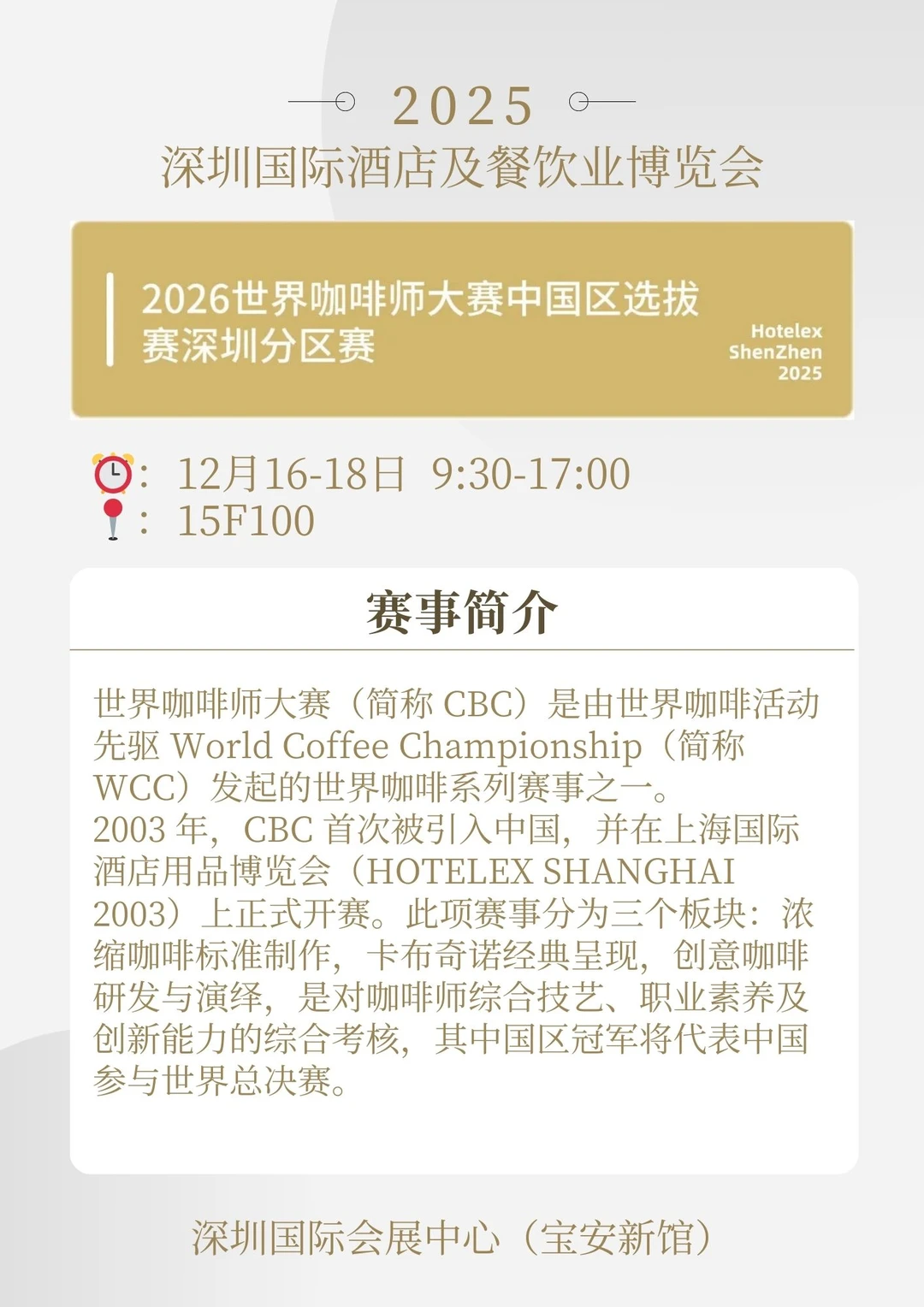 2026 世界咖啡师大赛中国区选拔赛深圳分区赛