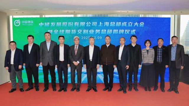 12月9日下午,中国物流所属中储发展股份有限公司上海总部成立大会暨全球期货交割业务总部揭牌仪式在上海市徐汇区举行。中国物流党委书记、董事长刘敬桢与上海市徐汇区委书记曹立强参加仪式并揭牌。中国物流党委常委、副总经理杜波,上海市徐汇区副区长陈勇,中储股份党委书记、董事长房永斌,中储股份党委副书记、总经理王海滨出席仪式。