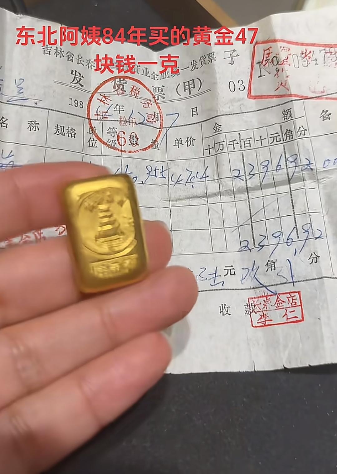 谁能想到,41年前的一次果断出手,让阿姨成了“民间投资大神”!1984年,她斥资2000多元买下150克黄金,在当年堪称“疯狂举动”——要知道,那会儿“万元户”都是顶流富豪,普通职工月薪才几十块,2000多元相当于不吃不喝攒三四年。 当时的黄金可不是随便买的,70年代末黄金再货币化呼声高涨,大家抢黄金只为抵御通胀,北京菜百金镯常被抢空,武汉商店甚至要后院摆摊卖金 。阿姨的眼光有多毒?1984年国际金价约308美元/盎司,换算下来每克才十几块,她花2000多入手150克,单价不到15元/克。 如今41年过去,这150克黄金彻底“逆袭”!2025年12月,国内品牌金饰价普遍超1300元/克,就算按回收价940元/克算,150克黄金也值14.1万元,足足翻了70倍不止。当年的2000元,按购买力换算相当于现在14-18万元,如今黄金市值早已远超当初的“本金价值”,妥妥赚出一套小户型首付。 从80年代的通胀避险,到现在年轻人囤金豆求安全感,黄金始终是国人心中的“硬通货” 。但阿姨的传奇也藏着投资真相:黄金不是稳赚不赔,1980年金价暴跌后曾套牢一代人21年。 你家有没有长辈在几十年前买过黄金、邮票这类“硬货”?现在升值多少了?到底是赚了还是赔了?欢迎在评论区讨论。