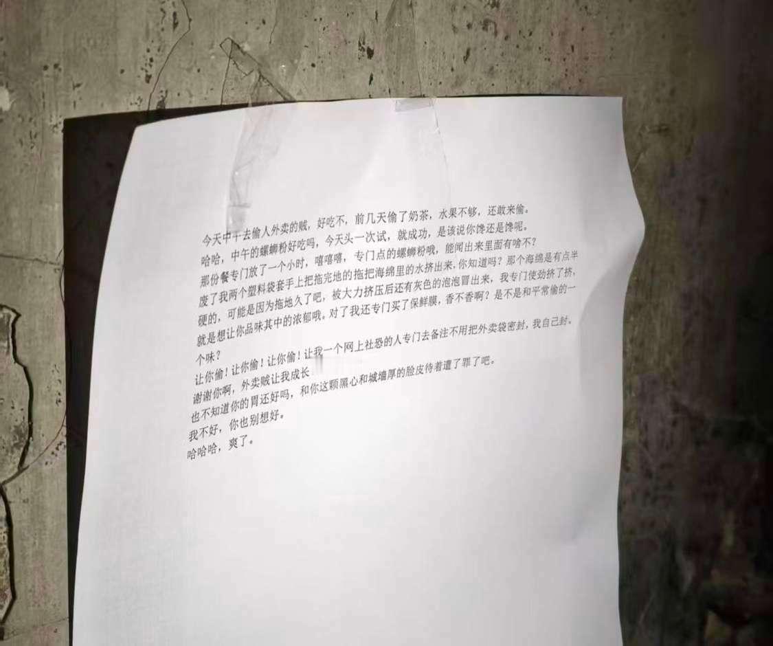 一学生偷外卖,被整蛊,吃到一半发现里面有大便,愤而报警,这脸皮比城墙还厚啊。估计