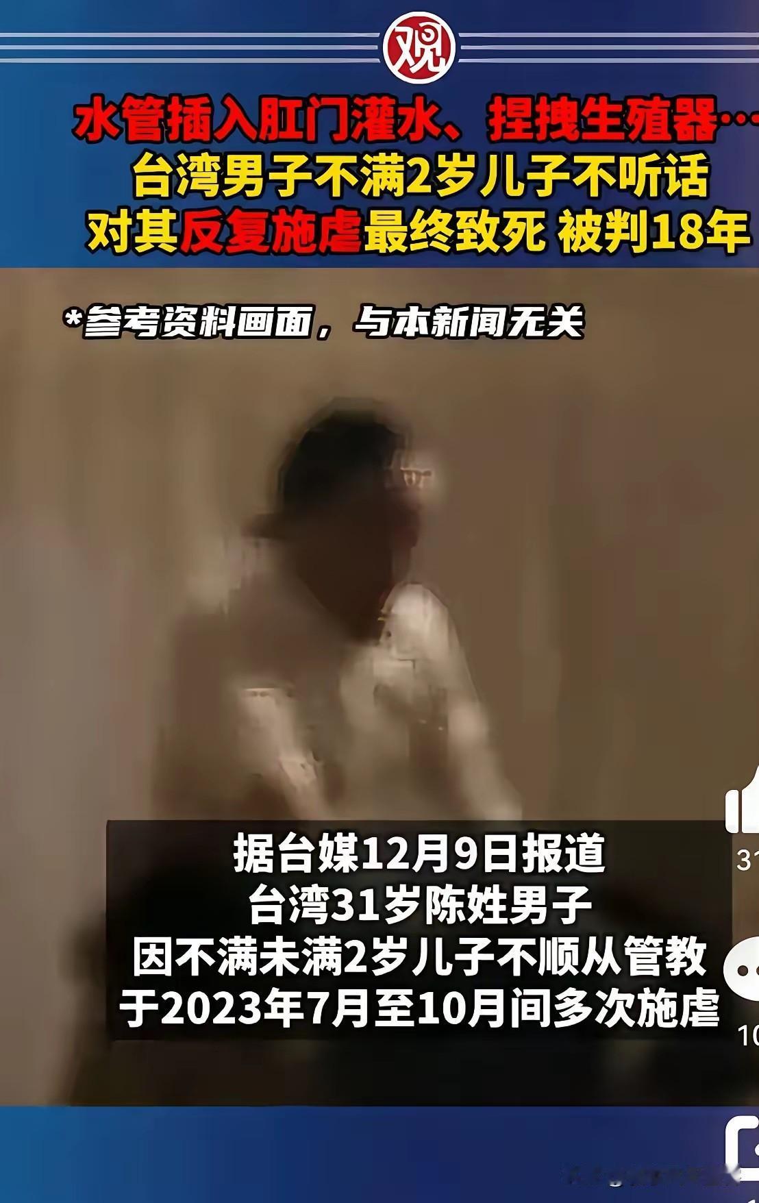 真是地狱空荡荡,恶魔在人间! 31岁的陈姓男子,对不满2岁的亲儿子下这么狠的手,简直是魔鬼!从2023年7月到10月,他因为嫌儿子不听话,多次施虐:先是用拳头猛捶孩子刚吃过饭的肚子,还用手掌重压,导致孩子肝损伤、胃破裂,最后引发腹膜炎和败血性休克,送医后也没救回来。更离谱的是,这恶魔被判18年还不服,居然连续上诉三次,脸皮厚得令人发指! 想想那不到2岁的娃,本该在爸妈怀里撒娇,却被亲爹折磨致死,肝肠寸断……这种禽兽不如的行为,不仅践踏了人性底线,更让无数父母心碎。法律判他18年,已是基于现有法规的裁决,可他还要挣扎上诉,试图逃脱惩罚。