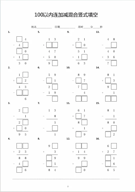 计算 小学数学思维训练 不懂就问有问必答 一年级数学 数学 竖式填空