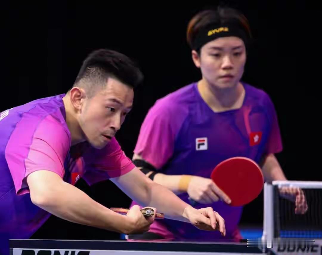 WTT香港总决赛混双小组赛首轮,林诗栋/蒯曼以11-9、11-4、11-4轻松战