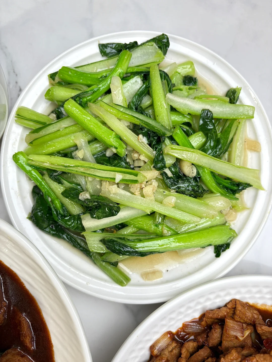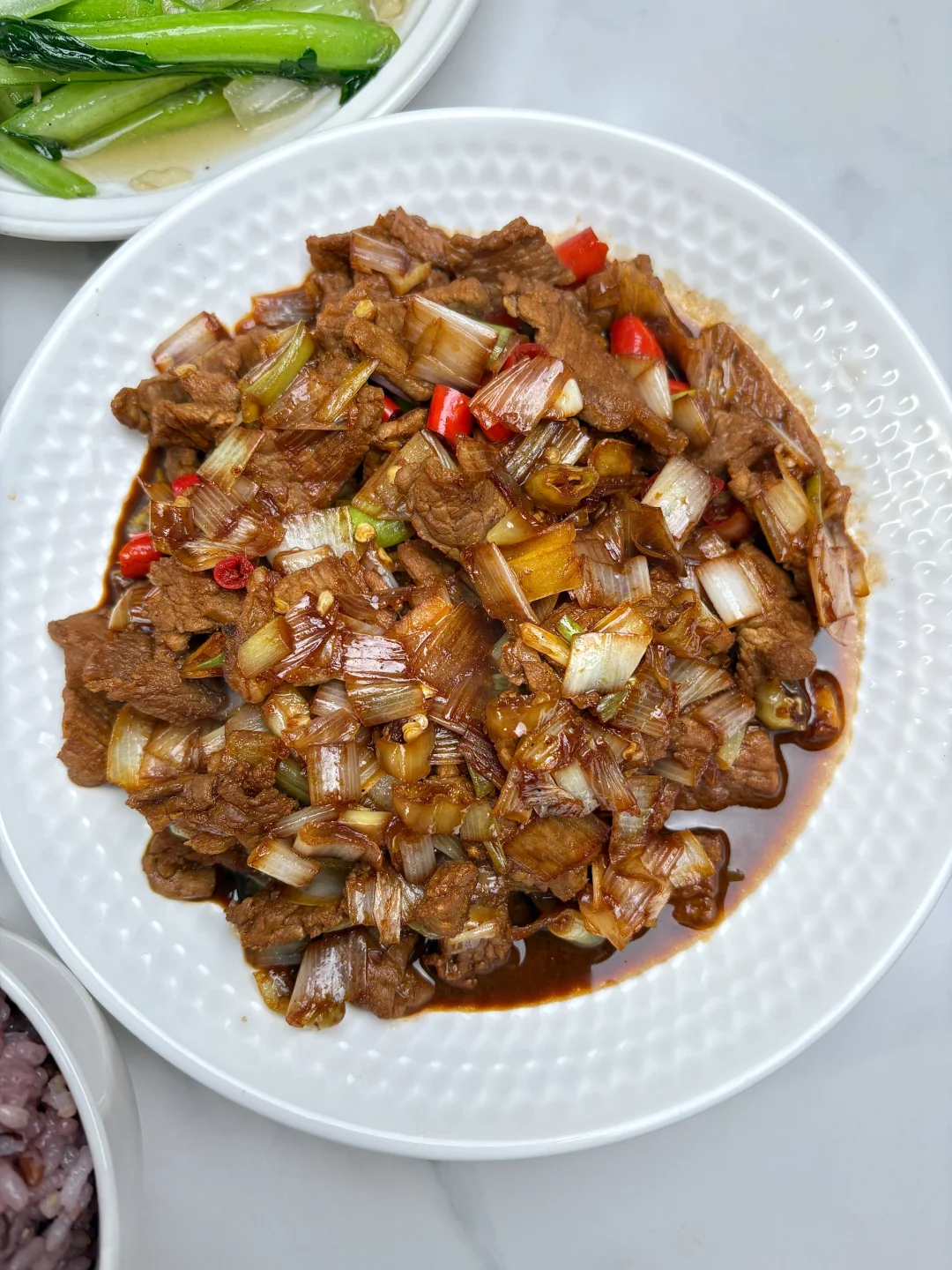 今日菜单: 葱爆牛肉 红烧素鸡 蒜蓉菜心