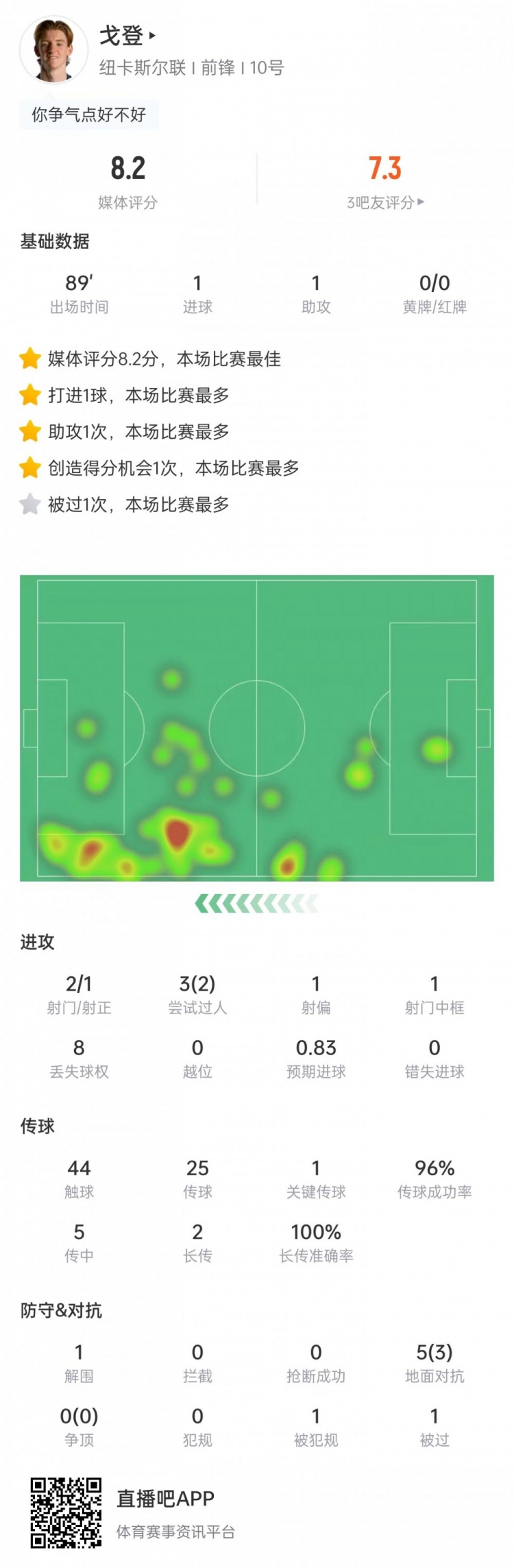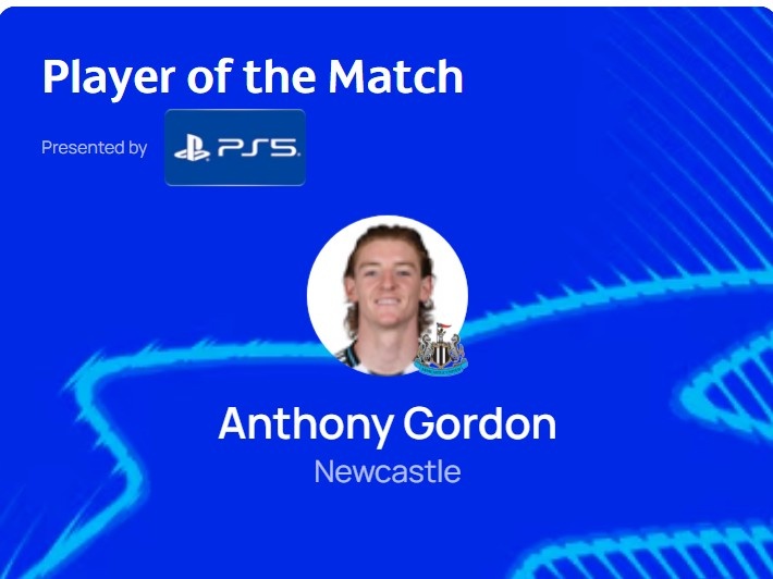 戈登此役传射建功,当选欧冠官方全场最佳球员。