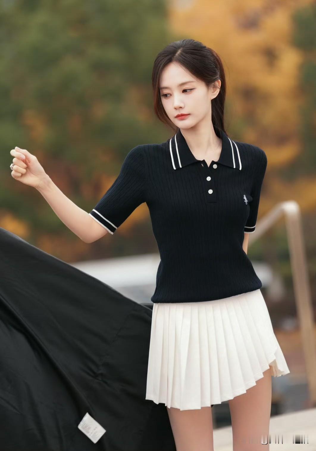 秋日穿搭指南:简约黑色Polo衫,搭配黑色外套,尽显优雅气质。