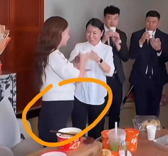 实锤了!马筱梅真的怀孕了! 昨天直播,马筱梅和员工举杯共饮时,不小心露出了侧身