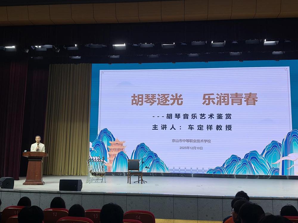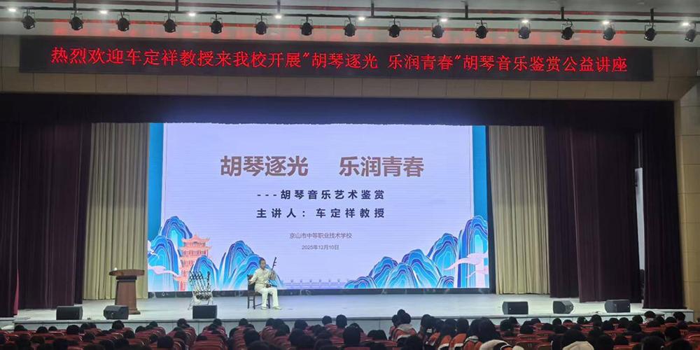为弘扬中华优秀传统文化,让师生近距离感受民族器乐的独特魅力,12月10日,原荆楚理工学院副校长、民族乐器国家一级演奏员、教授、研究员车定祥到京山市中等职业技术学校开展“胡琴逐光乐润青春”胡琴音乐鉴赏公益讲座。
