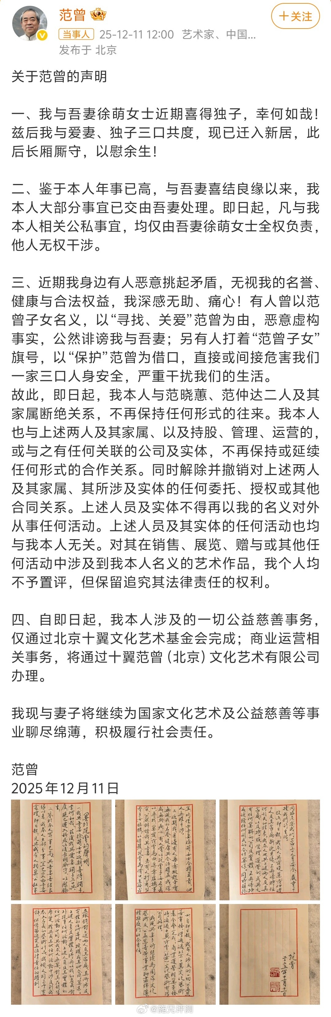 87岁画家范曾喜获独子87岁画家范增老来得子!恭喜!第四任妻子徐萌,两人相差50岁 范曾宣布与女儿继子断绝关系