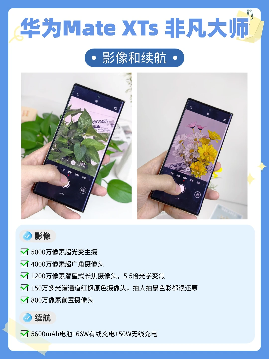 这么薄的机身内塞进了50MP主摄+40MP超广角+支持5.5倍光学变焦的潜望式长焦+红枫原色摄像头,不管是拍人还是拍景颜色非常还原。