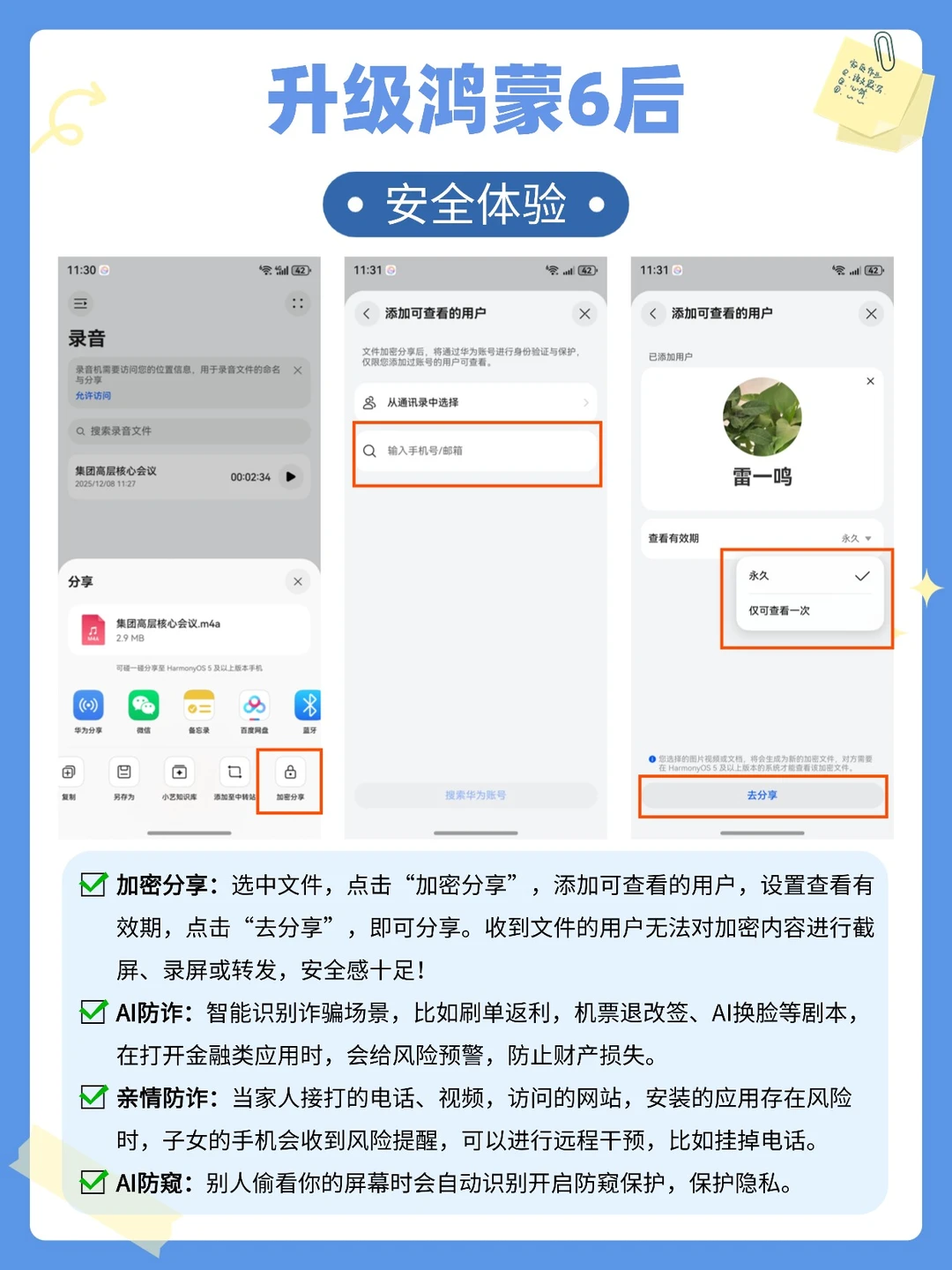 还有AI防诈、亲情防诈、加密分享、AI防窥,安全性拉满。