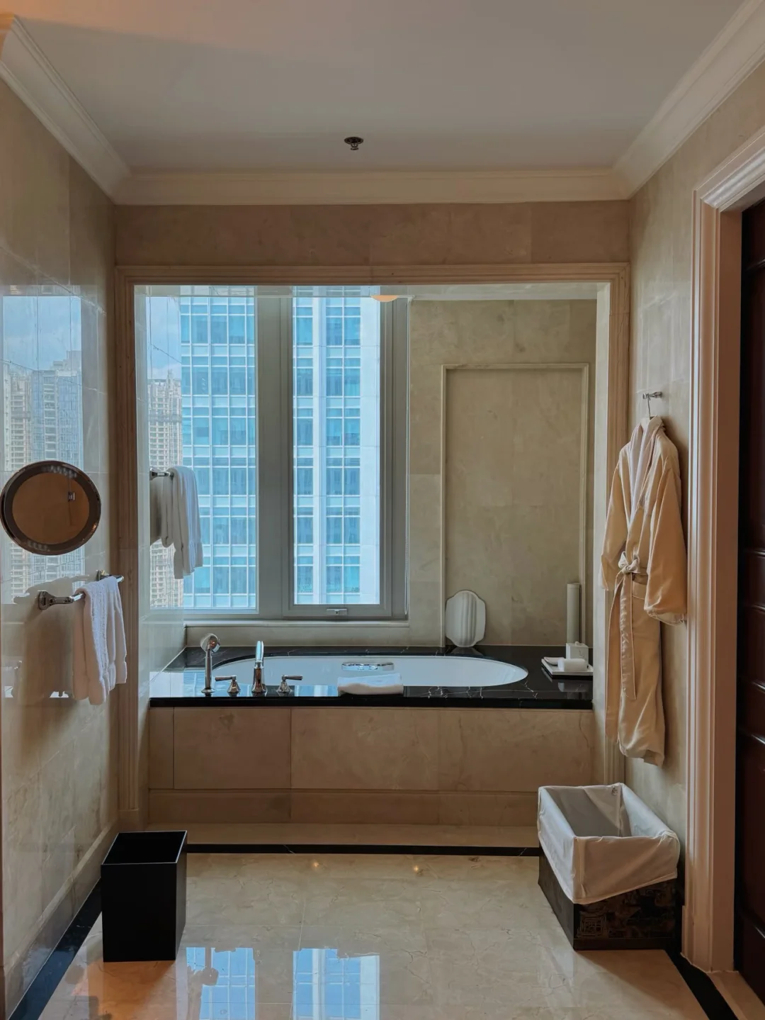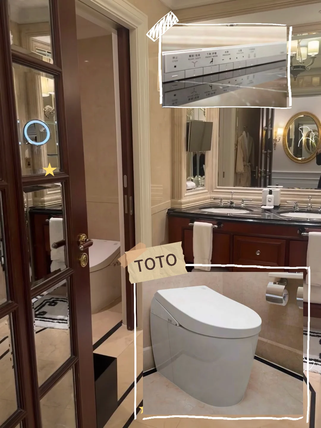 进浴室的瞬间还是被惊到——轻奢风的装修里,TOTO的智能马桶直接把“高端住宿的舒适感”焊死在细节里