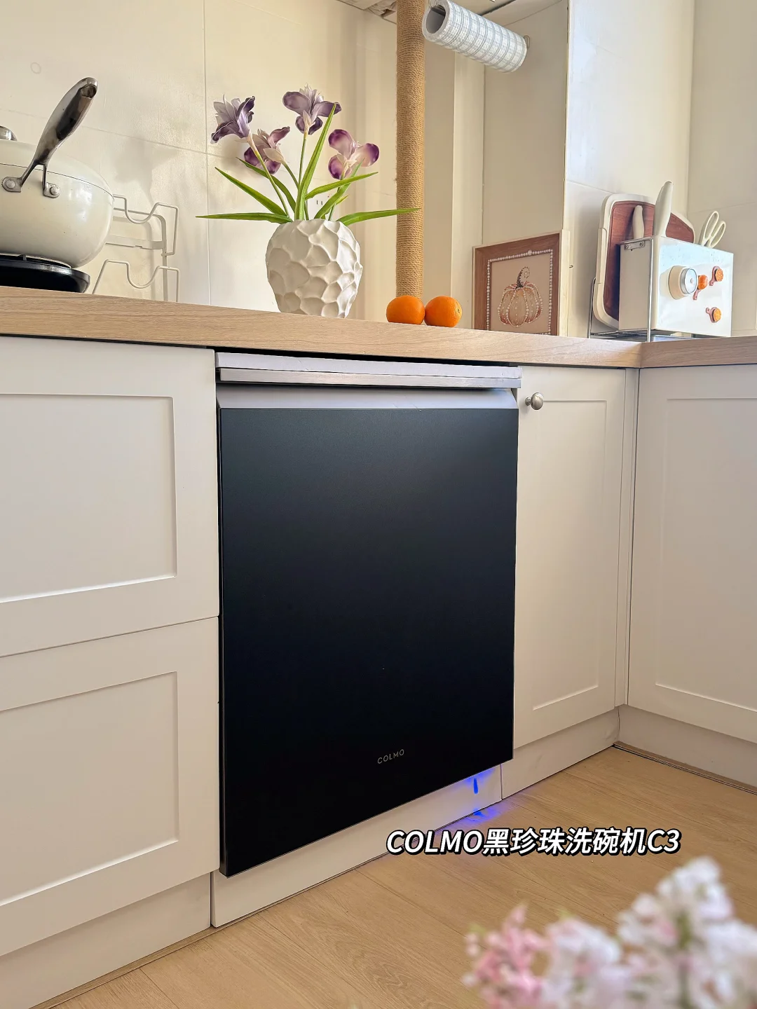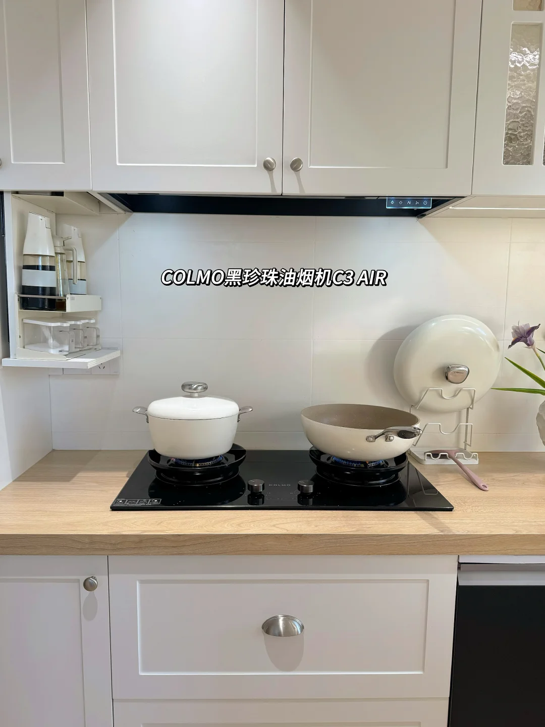 装修中最满意的就是自己设计的4㎡小厨房啦 不仅收获了很多互联网姐妹的喜爱❤️ 就连老妈来参观都直夸:“你这小厨房弄得真不错,好看又实用”👍🏻 🌈 关于【好看】 风格上选择了奶油原木风,告别小空间的压抑感,温馨又显大。打破常规柜门增加水玻璃柜门,加上灯带特别有氛围感💫。 就连厨电我也选择了低调全嵌入的款式——COLMO黑珍珠油烟机C3 AIR,全隐超薄机身只有328mm,完美藏入橱柜。搭配了同系列COLMO黑珍珠洗碗机C3,支持面板全嵌定制,我选了和烟机一致的黑色面板,一眼看过去整洁又高级。 🛠️ 关于【实用】 ✅动线布局是关键,严格遵守“拿-洗-切-炒-盛”黄金动线🚶🏻‍♀️做饭效率翻倍! ✅空间收纳到极致,冰箱移出给小厨房扩容,腾出的空间做了一组电器高柜,完美收纳各种常用和闲置的小家电,还DIY了升级调料架和果蔬拉篮,坚决不浪费一平米✌。 说到下厨体验,COLMO黑珍珠油烟机C3 AIR真的让我惊艳——首先是全隐的外观,完全藏在橱柜里,厨房空间瞬间变大✨,其次爆炒风量高达30m³/min,超级大风量💨,油烟出来的瞬吸就能通通吸掉根本不会扑脸,1300Pa大风压,再也不担心油烟倒灌。它还能AI智感联动,主动感应温度与油烟,自动调节风力🌪️,做饭全程几乎不用我动手。就连后续的清洁也很省心,一键高温110℃蒸汽洗♨️,再也不用费力拆洗了省心又省力! 洗碗更是彻底解放双手👐COLMO黑珍珠洗碗机C3的AI仿生手洗PRO技术,配合X型对旋喷臂,清洁指数高达1.32,连异形餐具都能洗得干干净净💧。搭配滤网自清洁,长久保持洗碗机洗涤效果,洗完还能用105℃离子热烘❤️‍🔥,除菌🦠率达到99.99999%,直接当消毒柜用,省心又卫生。 这个4㎡的小厨房,正因为每一处细节的用心、每一件电器的可靠,让做饭成了一件充满幸福感的小事💖