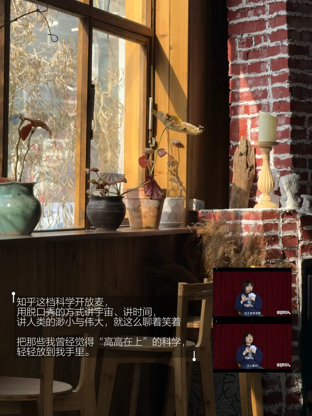 知乎这档科学开放麦,用脱口秀的方式讲宇宙、讲时间,讲人类的渺小与伟大,就这么聊着笑着,把那些我曾经觉得“高高在上”的科学,轻轻放到我手里。