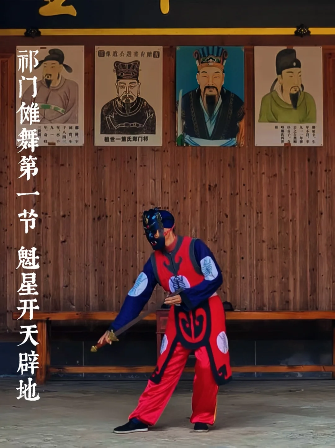 很凑巧,在我们祁门傩舞游学活动的这几天,刚好上线了作为祁门傩舞推广大使的闭年刊封面!(所戴面具👺为魁星,又名盘古,代表开天辟地的力量)此刻,偶像的正能量变得具象化!追星也可以很有文化含量,希望越来越多的偶像能够加入非遗传播的队伍[赞R][赞R][赞R] · 近几年,随着短视频的爆火,“傩”逐渐走进了大众的视野,但“傩舞”≠“傩戏”,“傩舞”更侧重祭祀仪式中的舞蹈动作,形式古朴、节奏缓慢;而“傩戏”则在傩舞基础上加入角色、对白、情节,逐渐演变为一种地方戏曲形式,娱乐性更强。相较于观赏性更高的傩戏,傩舞却少有人真正了解。 · 非遗游学的核心是搭建一座系统性的桥梁,探索非遗根脉,在了解当地历史的前提下,再亲身感受当地的文化脉搏。这次游学,导师先给我们讲解了徽州文化、傩舞历史,之后再安排傩舞的表演,知识前置果然很重要,带着情节故事再去观看演出🎭感受完全不一样!很庆幸,我们看到了完整的祁门傩舞四节!(表演者平均年龄65岁,有些动作已经很难完成,但他们依然一丝不苟!每一个步伐背后都是厚重的传承!) · 关于祁门傩舞 ✅ 2008年 列入第二批国家级非物质文化遗产名录 ✅ 傩舞面具共9个:魁星、刘海、吉星将军、凶星土地 + 四象(春、夏、秋、冬) ✅ 实际表演🎭是5个:四象只用于祭祀,不上台 ✅ 完整表演分四节: 1️⃣ 魁星开天辟地-P3 2️⃣ 跳和合:刘海戏金蟾-P4 3️⃣ 将军戒土地-P5 4️⃣ 狮子保平安-P6 (详见附图P12) · 借用采访中的话:祁门傩舞你看一次绝对终生难忘!的确是啊,高举双手赞同🙋非遗不是“老古董”,而是活着的文化血脉。也许我们无法让所有人都爱上傩舞,但至少,可以让更多人看得懂、看得深、看得敬。真正的非遗体验是理解、尊重、链接! · -如果你也对真实、深度、有温度的文化旅行感兴趣,欢迎加入下一场非遗游学——一起慢下来,走进那些被遗忘却闪闪发光的传统。