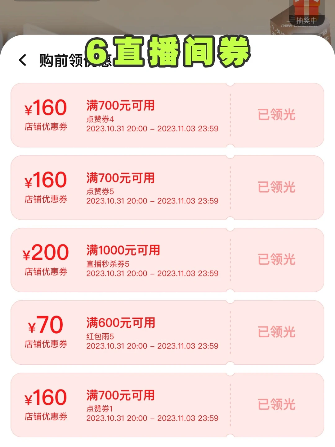 vi.直播间券:直播间每半点抢