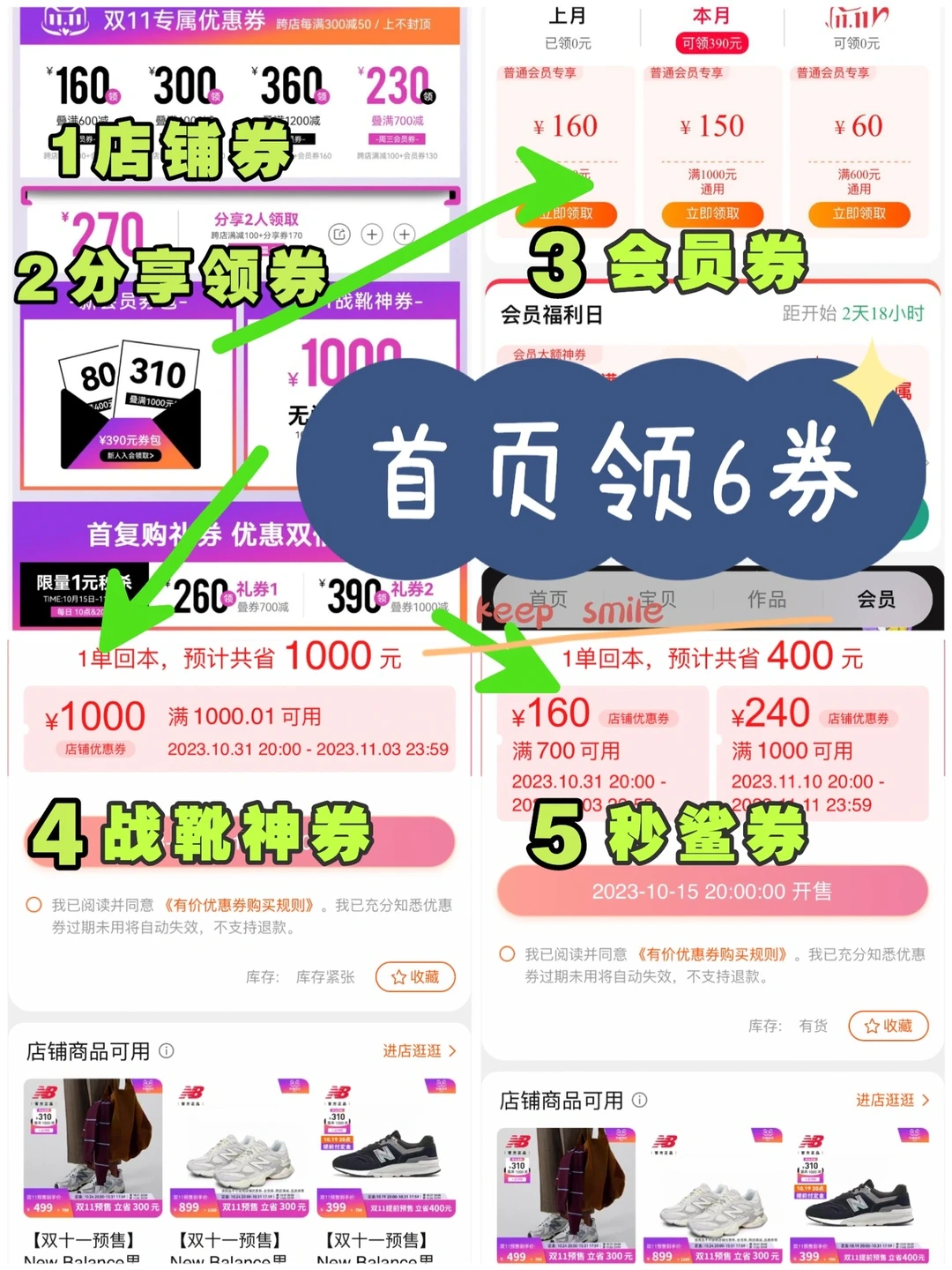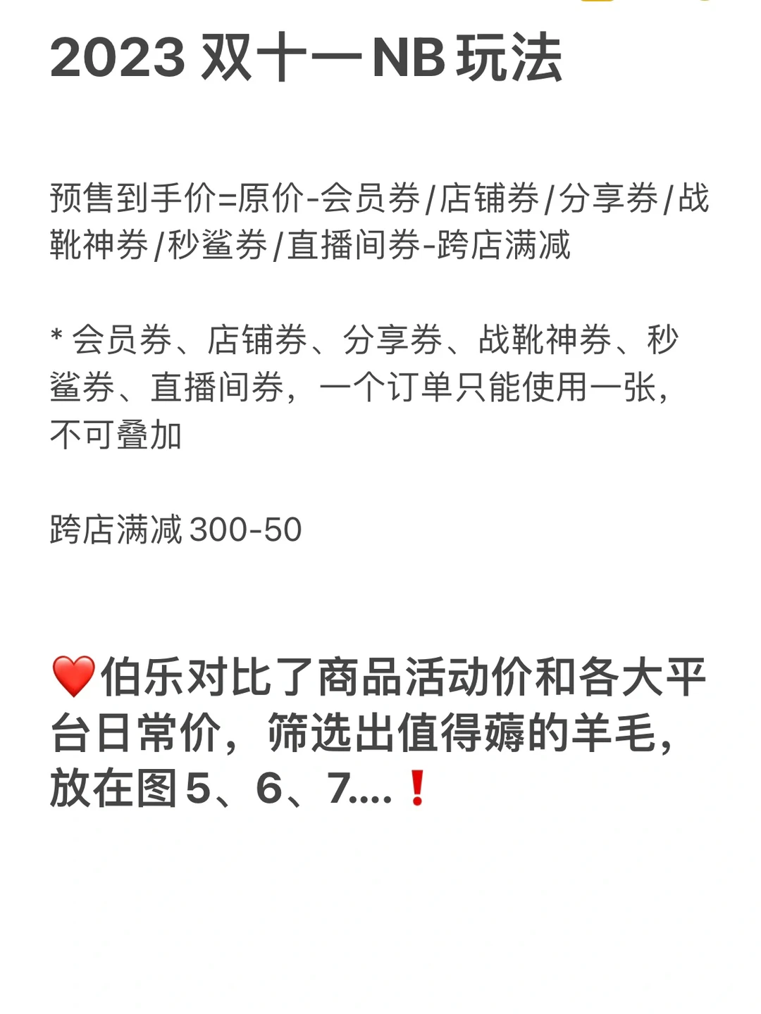 ⚠️店铺券、会员券、1元秒鲨券、战靴神券、直播券、分享领券均不可叠加使用,一笔订单只能使用一张优惠券