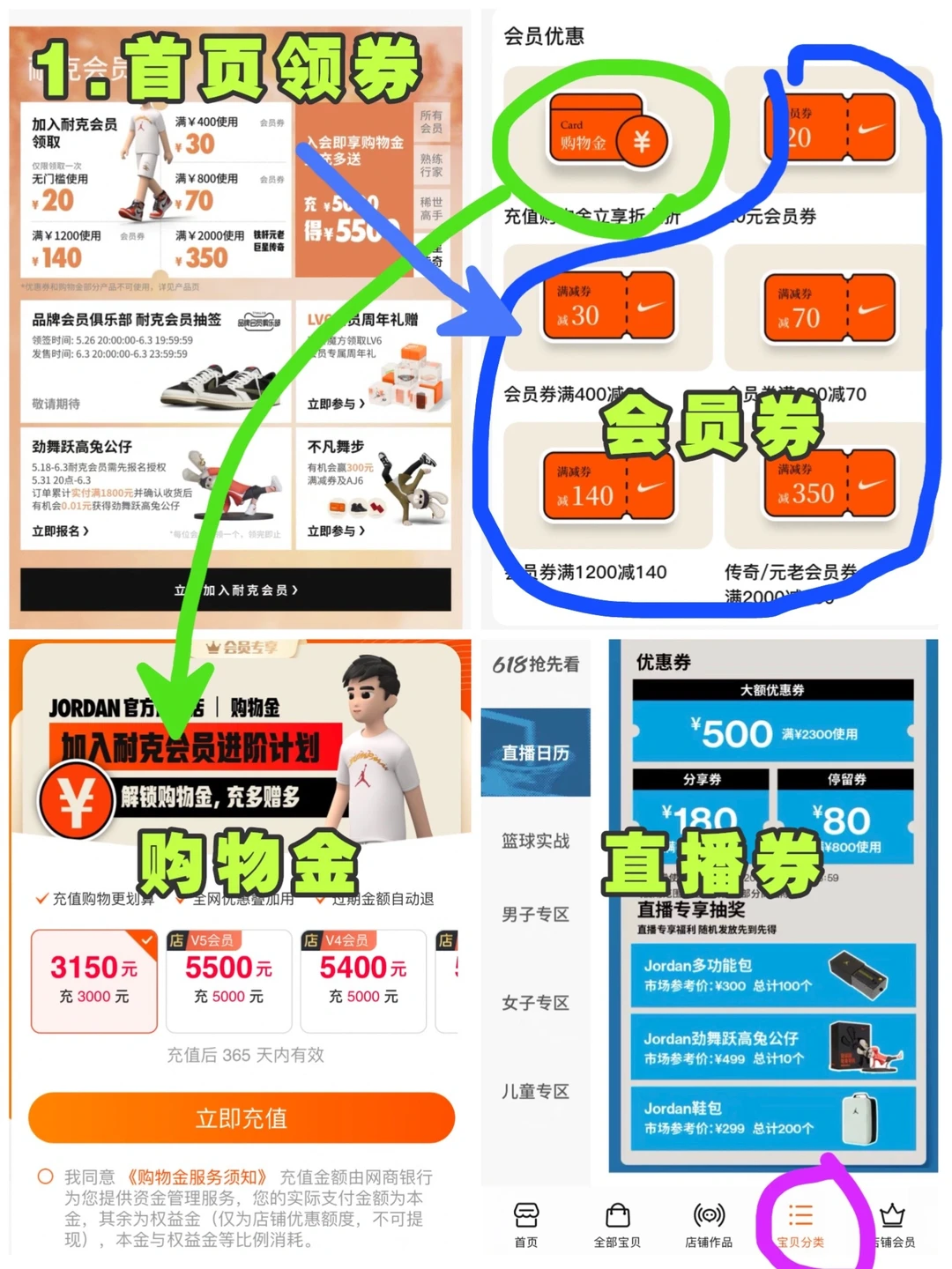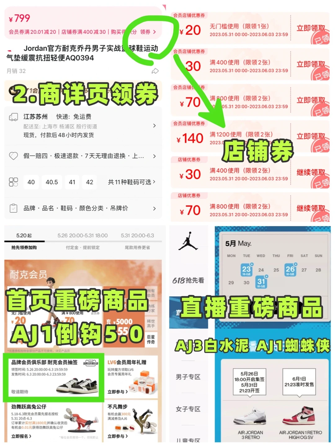 1.领券(店铺券,会员券,购物金,直播券):5月20日起
