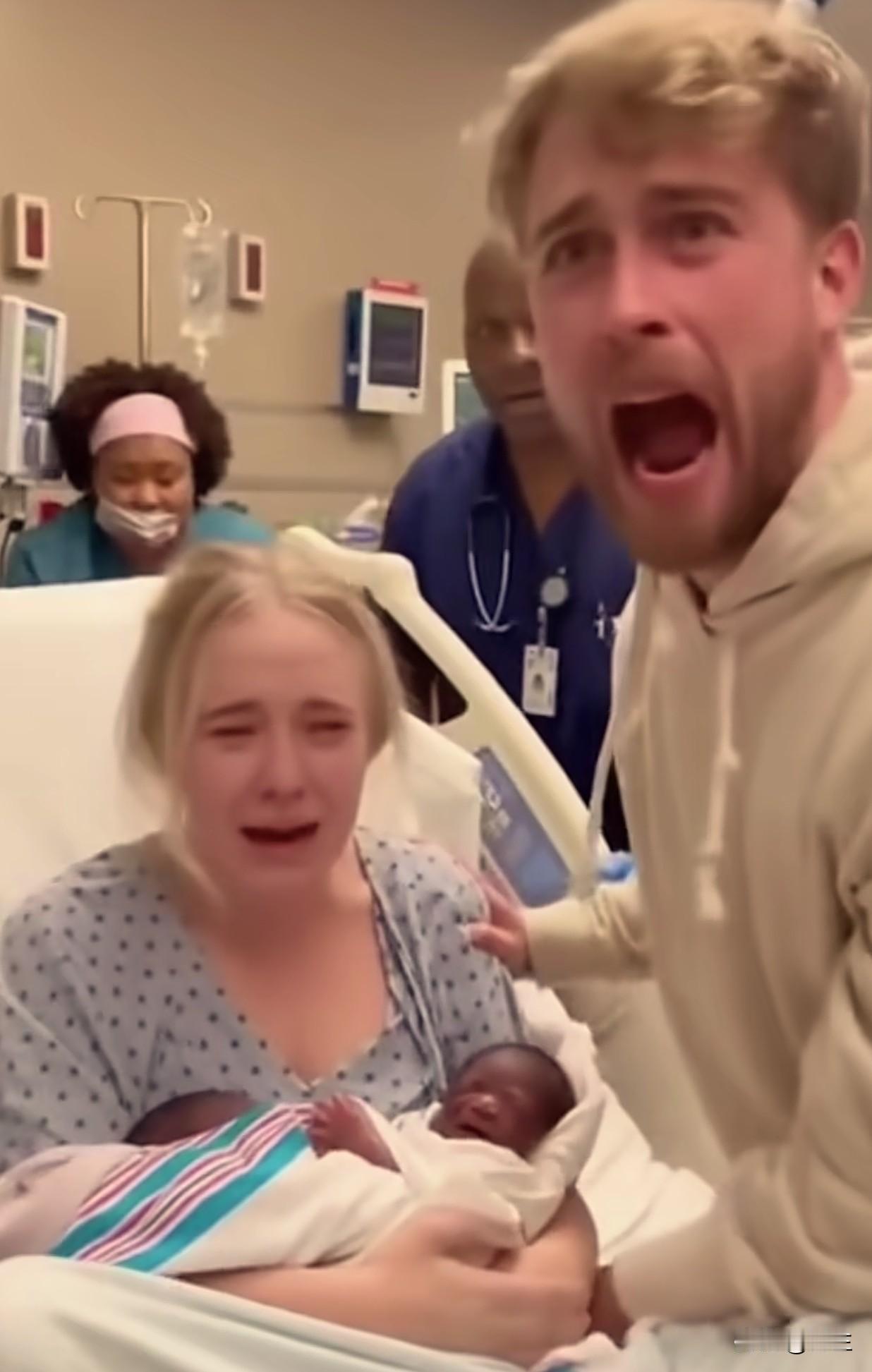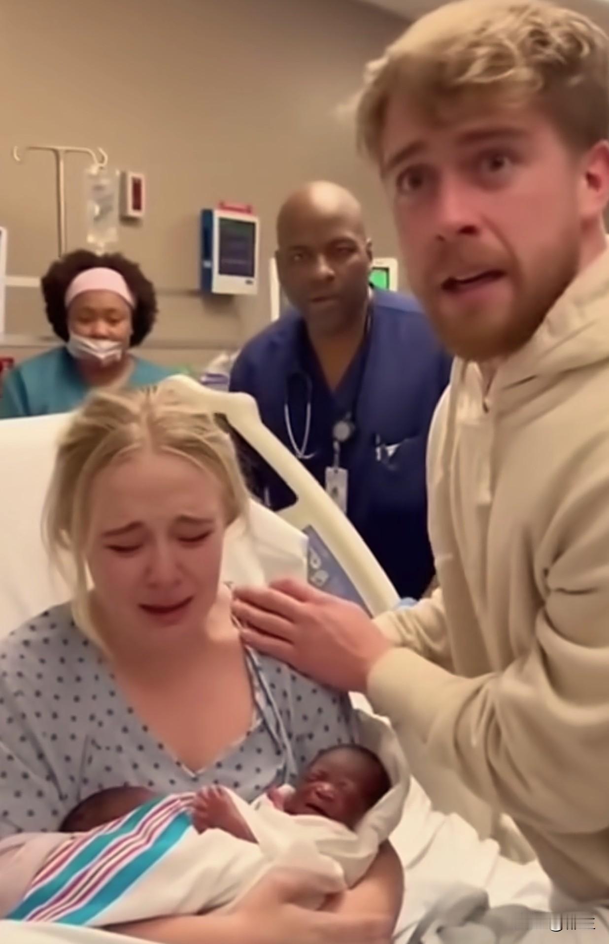 外国这对白人夫妇傻眼了,明明两个人都是白人,生下来的孩子却是黑皮肤的,妈妈抱在身上都不可思议,爸爸更是嚎啕大哭,这一点也科学啊! 网友说:看场景,是在医院,是不是医院给报错了? 也有网友说:这是刚刚生下来的吧!都没有抱离开,怎么会抱错了呢? 看到后面两位医生的表情,他们似乎也觉得不可思议。