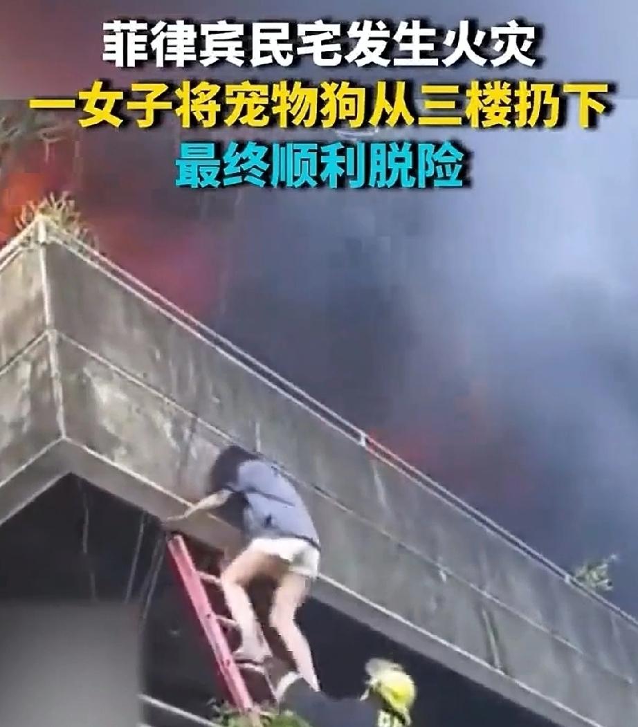 12月10日,菲律宾曼达乌市一幢居民楼发生火灾,浓烟裹挟着火焰肆意横行,一女子和她的两只宠物狗被困在三楼,急的团团转。 消防队员闻讯赶到现场,不少热心的市民也在楼下伸出援助之手之。女子看到了摆脱困境的希望,心情平静下来。她先后把两只狗狗从楼上扔下,被下面热心的众人接住。女子在消防队员的接应下,顺利脱险。 水火无情,人间有爱。面对灾害,我们看到众人纷纷伸出援手,战胜灾害的决心。人间的爱能克服一切困难。 菲律宾女子火灾时将狗从三楼扔下菲律宾火灾
